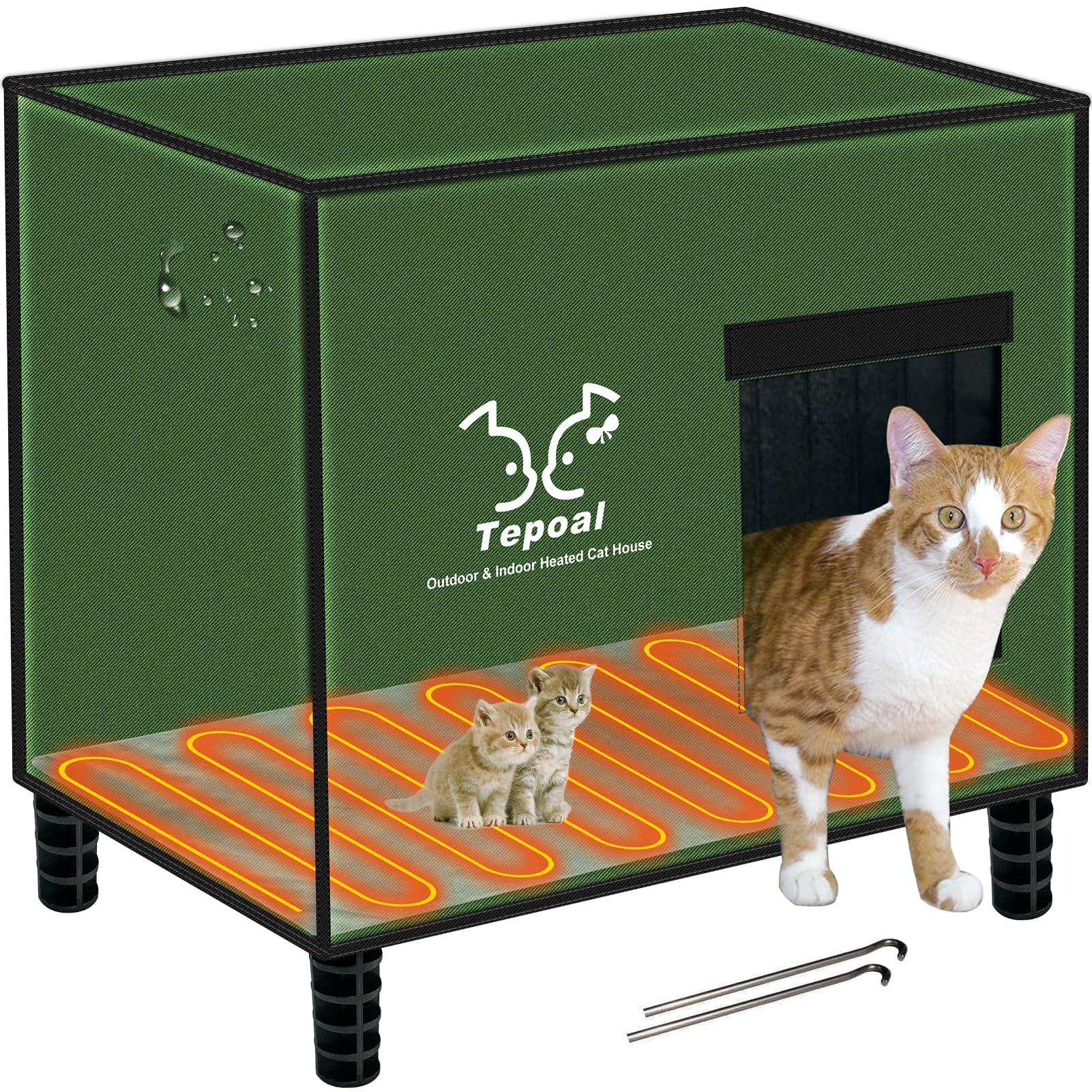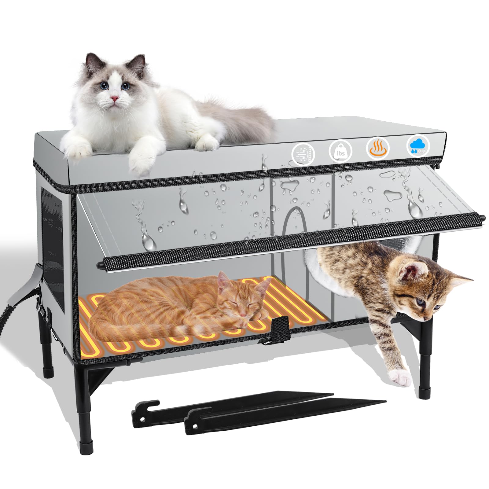 Casa térmica para gatos para interiores y exteriores, resistente a la intemperie, con almohadilla térmica para invierno, refugio e