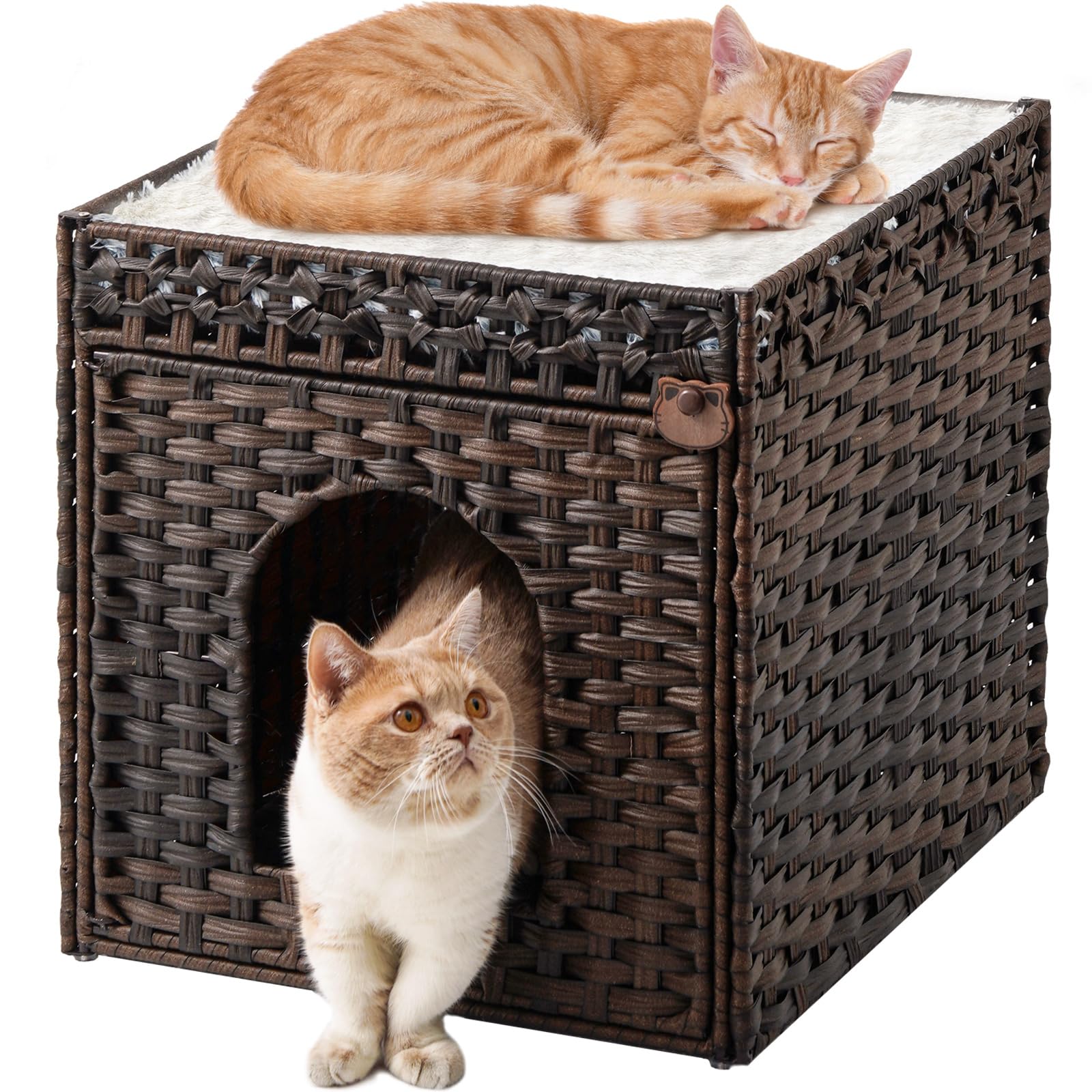 Camas para gatos de interior, cubo doble extragrande para mascotas, cueva doble para gatos, casas para gatos tejidas a mano con co
