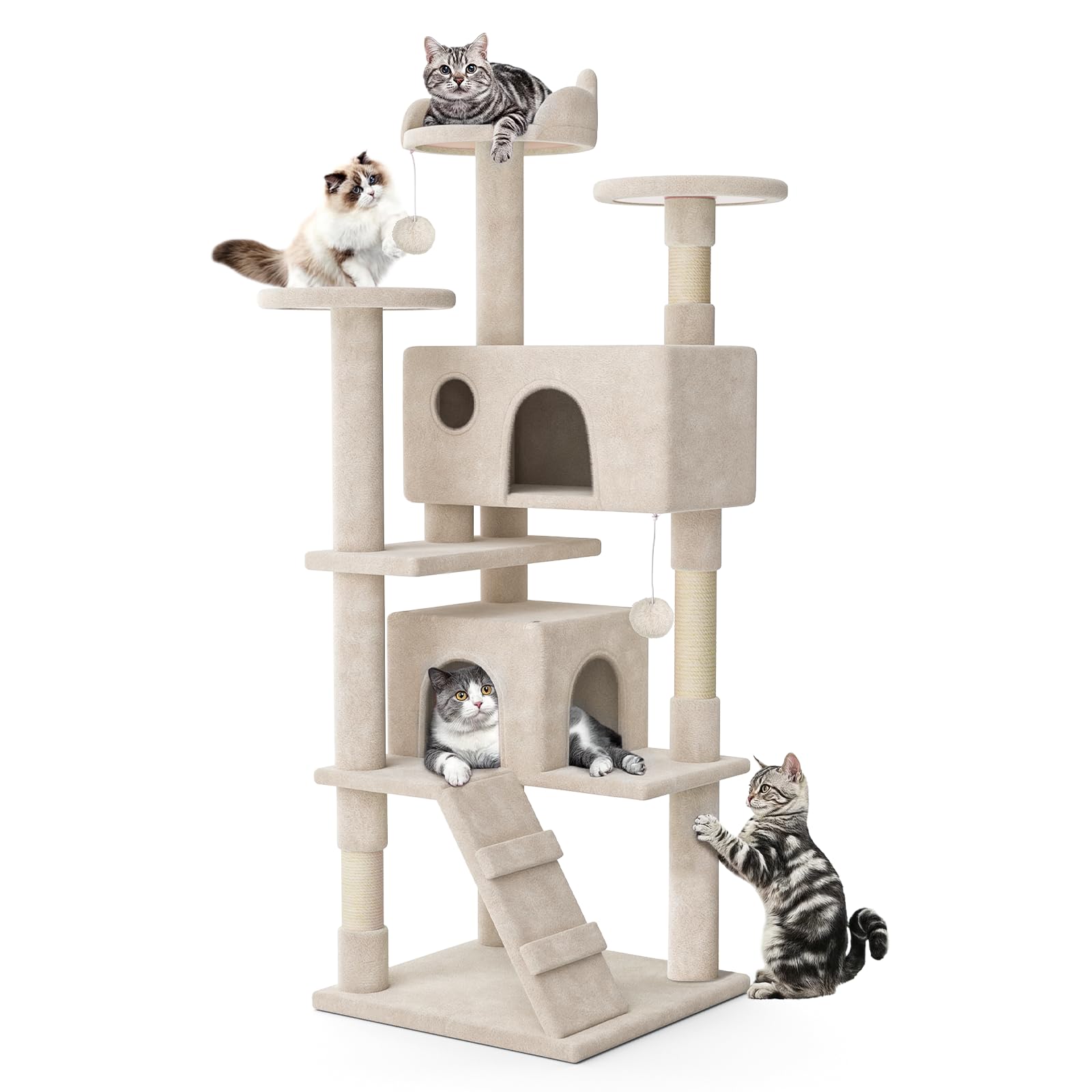 MoNiBloom Torre de árbol para gatos de 60 pulgadas para gatos de interior y adultos grandes, torre para gatos con poste rascador,
