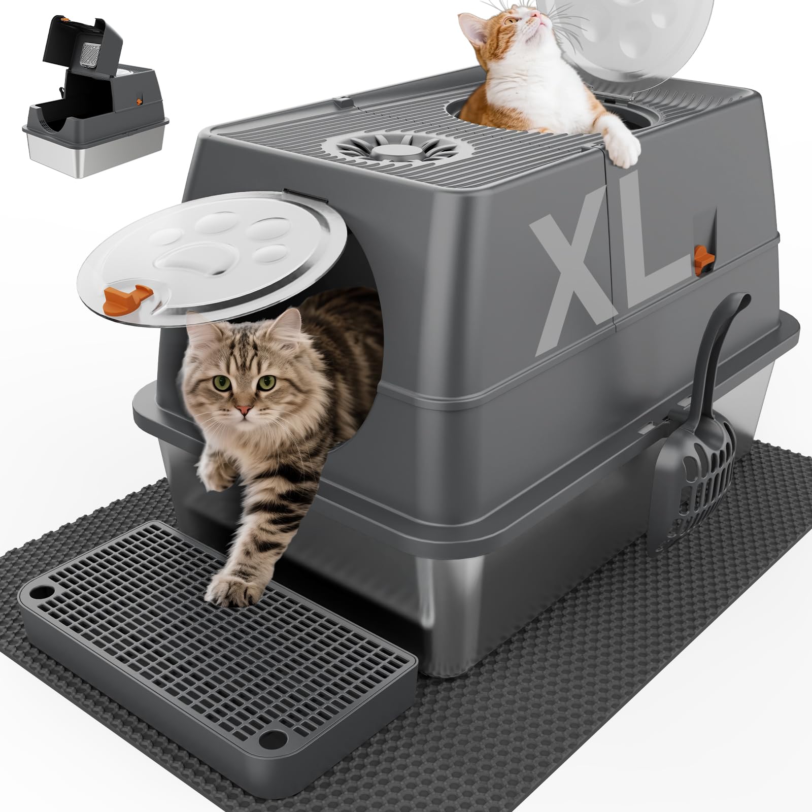 Caja de arena para gatos de acero inoxidable con tapa, caja de arena extragrande extragrande para gatos, caja de metal cerrada par