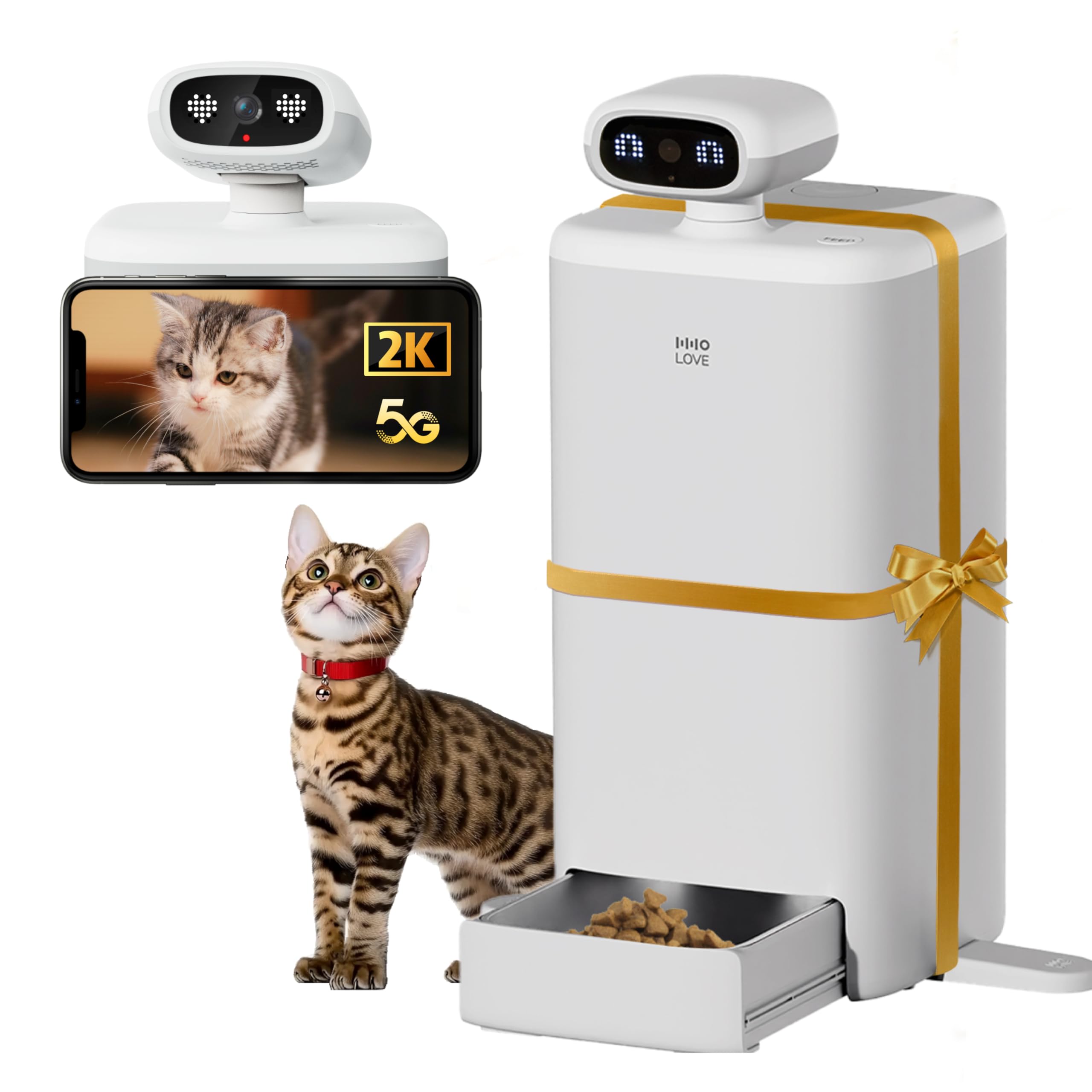 Comedero automático para gatos con cámara, visión nocturna de video HD 2K, alimentador para mascotas 5G con audio de 2 vías, dispe