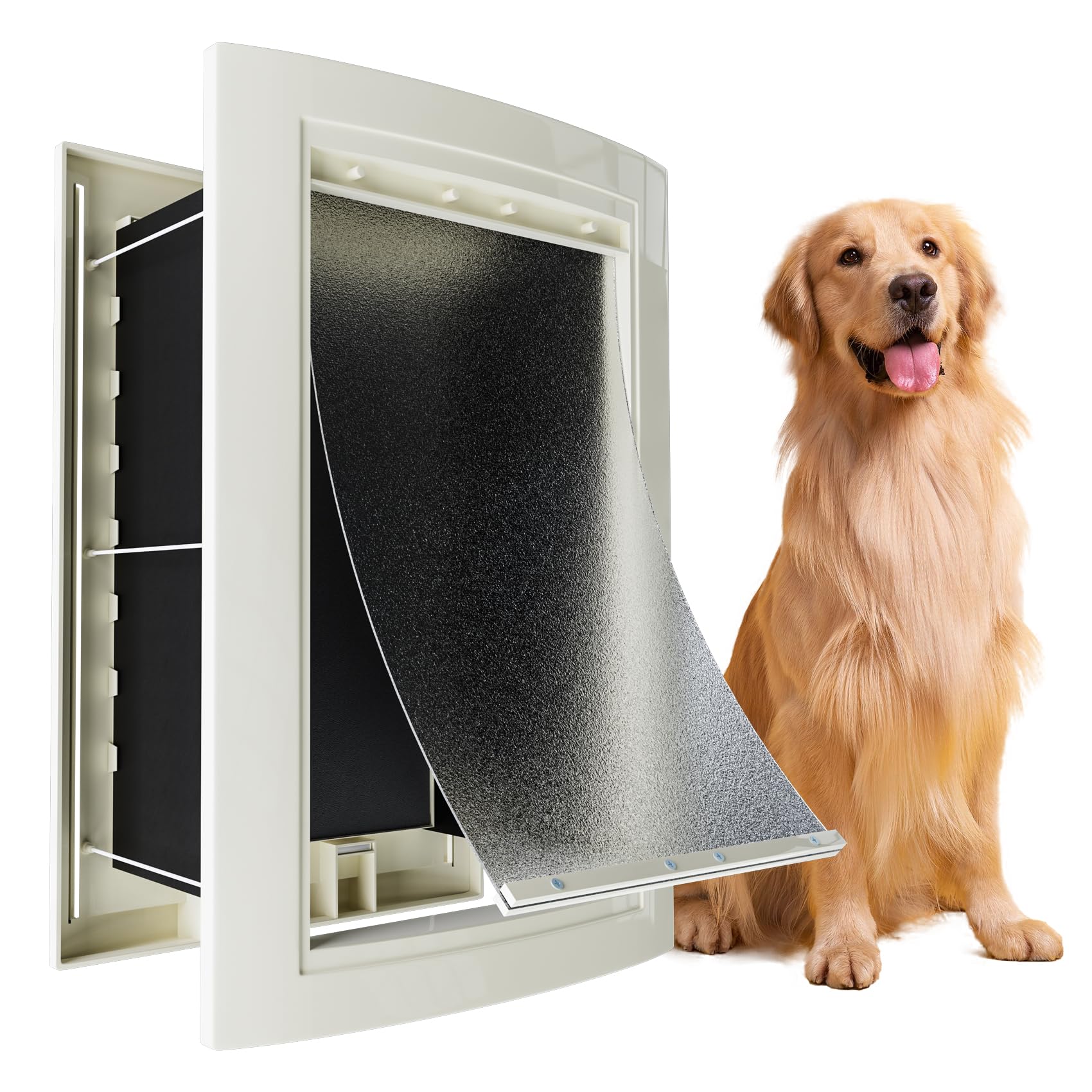 mestyl Puerta para perro para pared, puerta de mascotas, puerta para perro con túnel telescópico, solapas magnéticas dobles y pane