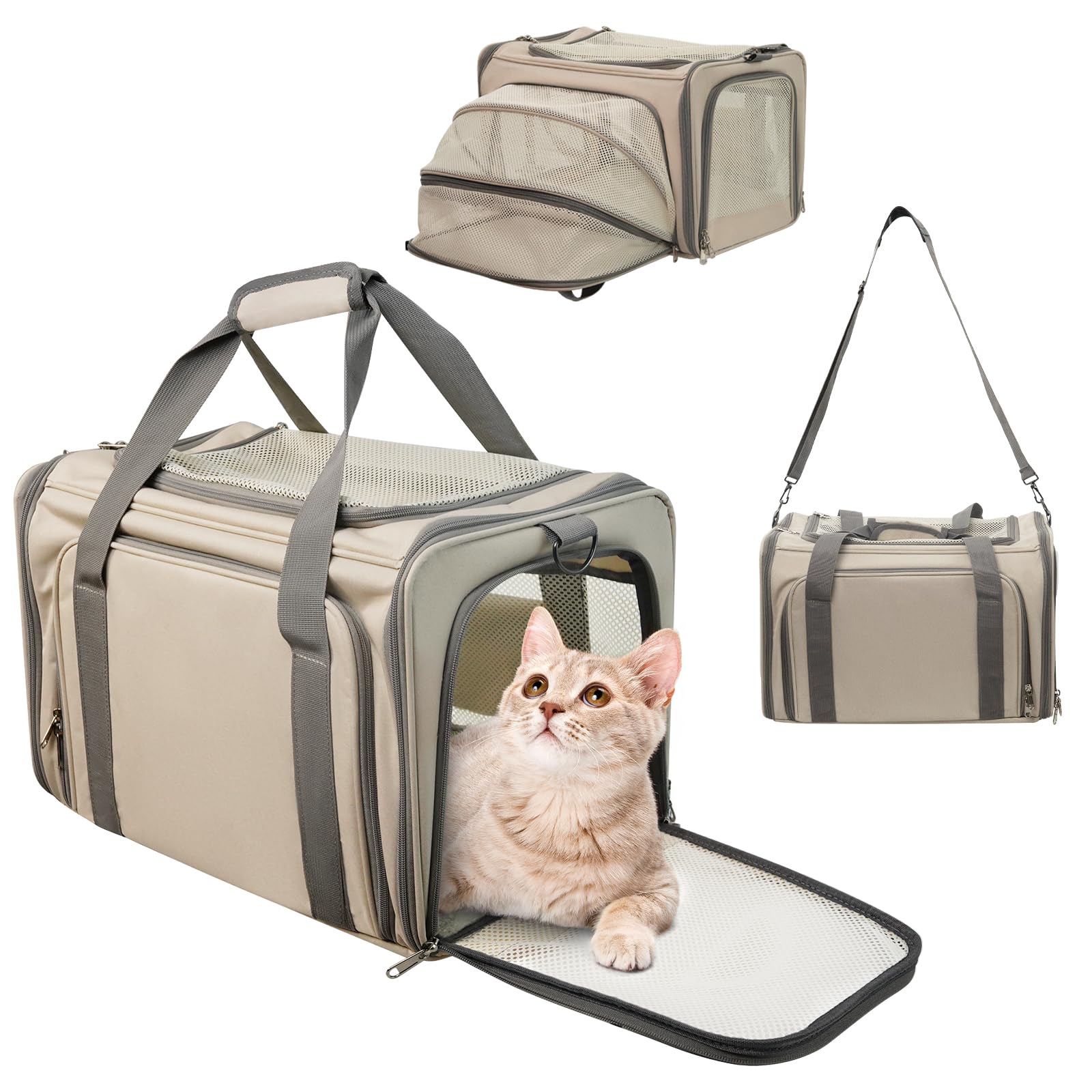 Transportadores de mascotas aprobados por aerolíneas, 18 x 11 x 11 pulgadas, expandible para gatos, plegable para perros, transpor