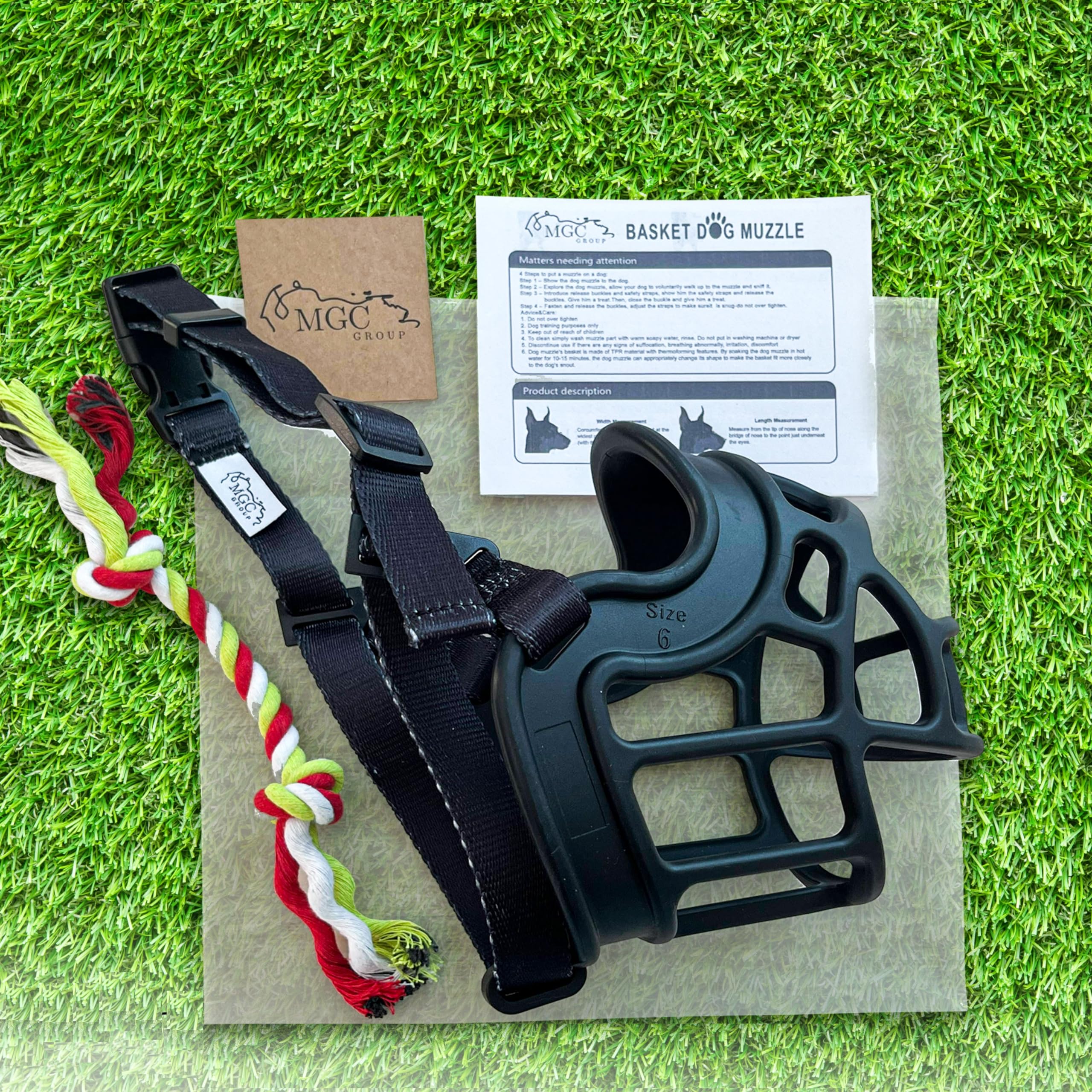 Bozal de goma Baskerville de 5 pulgadas, talla 6, Negro