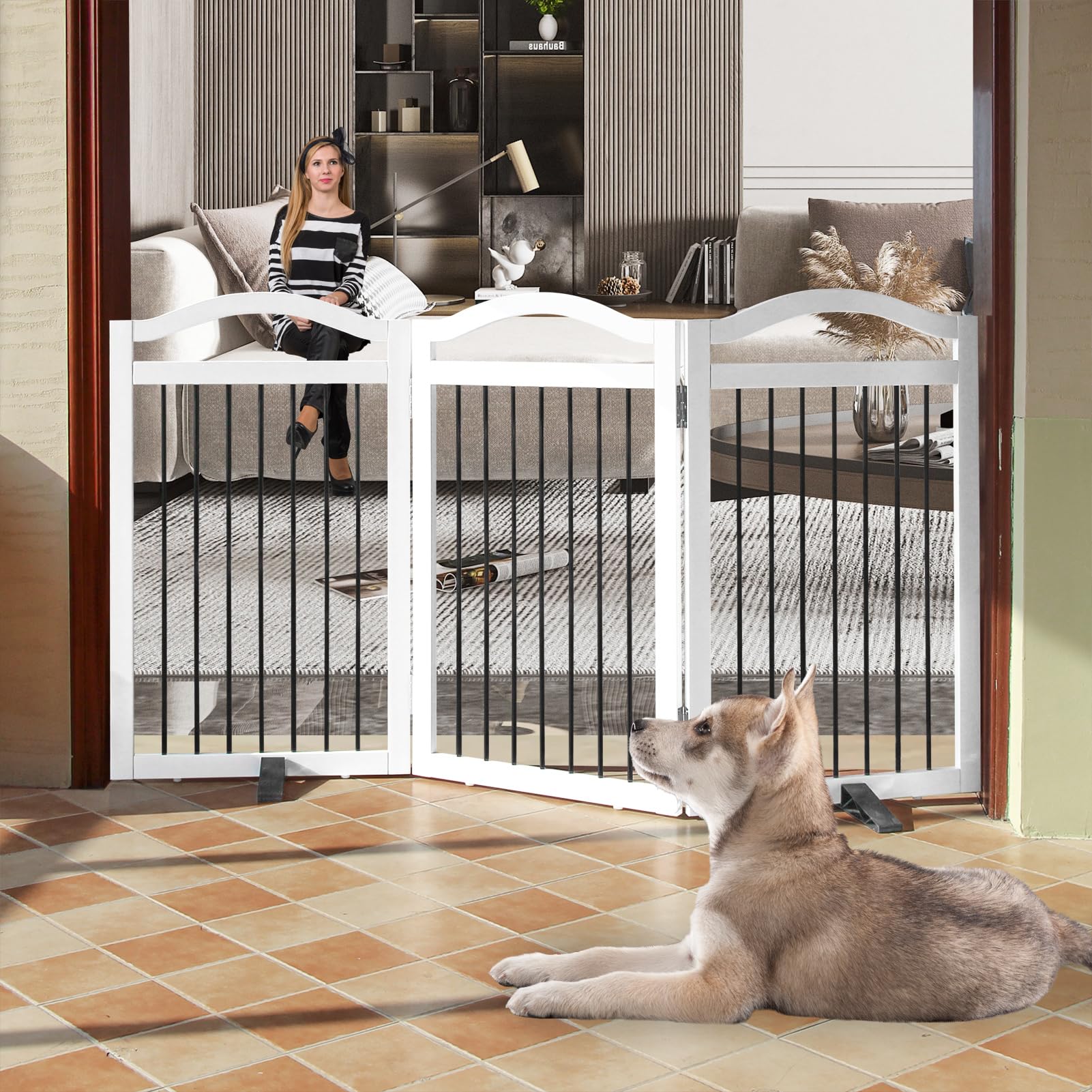 ZJSF Puerta plegable independiente para perros, puerta de madera extra ancha para cachorros, 6 paneles, puertas altas para mascota