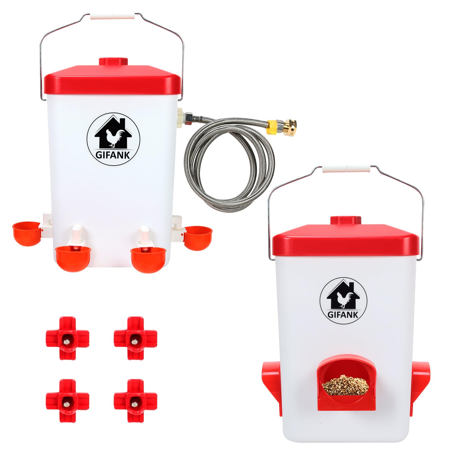 Kit de alimentador de pollo de 12 piezas y kit de 12 tazas de agua de pollo, taza de agua de pollo por gravedad y kit de puerto de