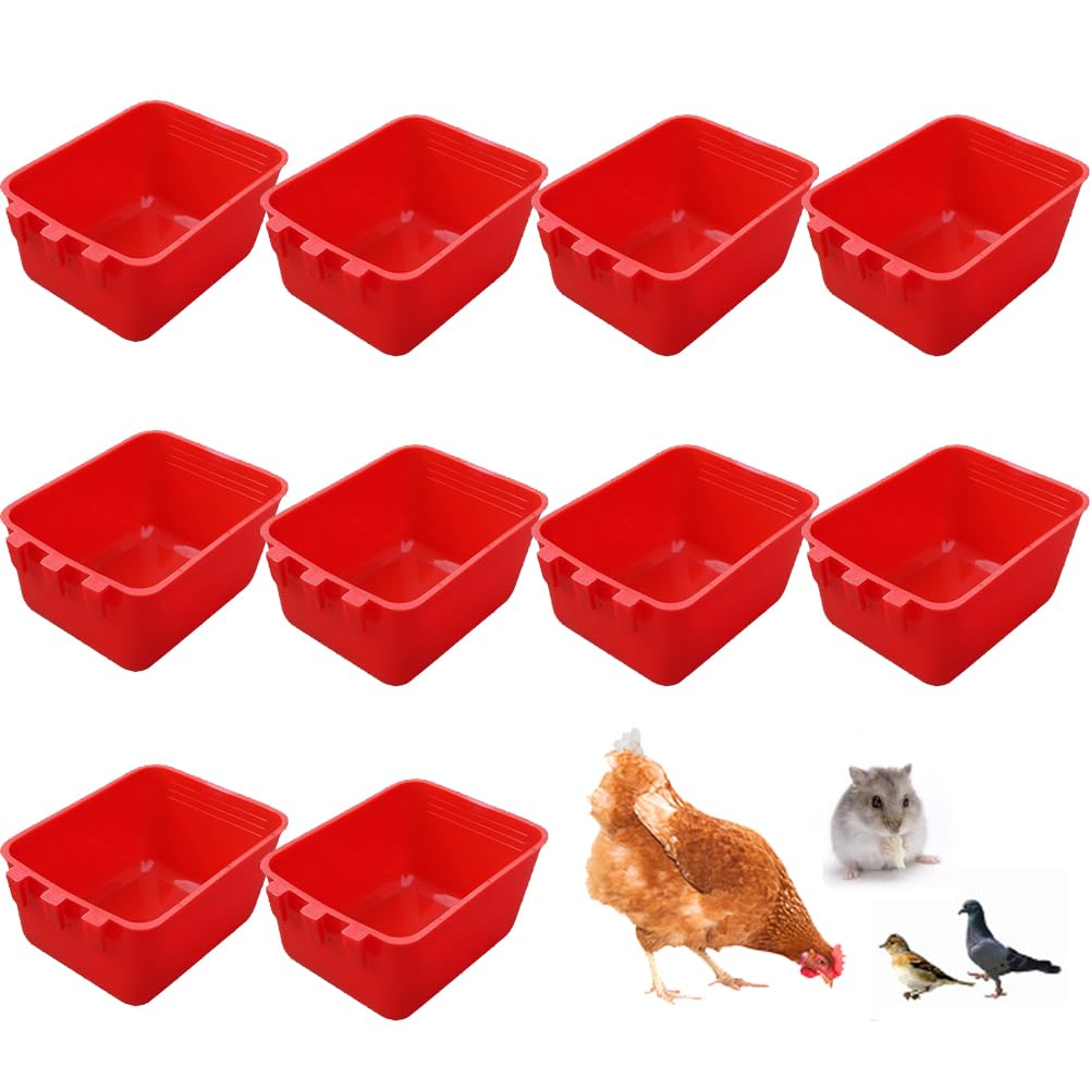 Paquete de 10 tazas cuadradas para pájaros, comedero para pájaros colgantes, bebedor de plástico, bebedero de jaula de codorniz, c
