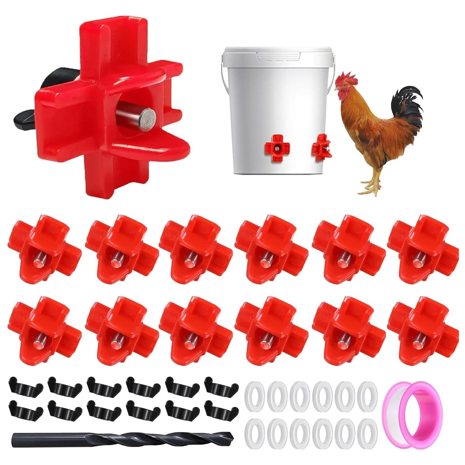 DoubleWood 20 pezones de pollo, montaje lateral horizontal, para aves de corral, bebedero para pezones de agua, bebedor al aire li