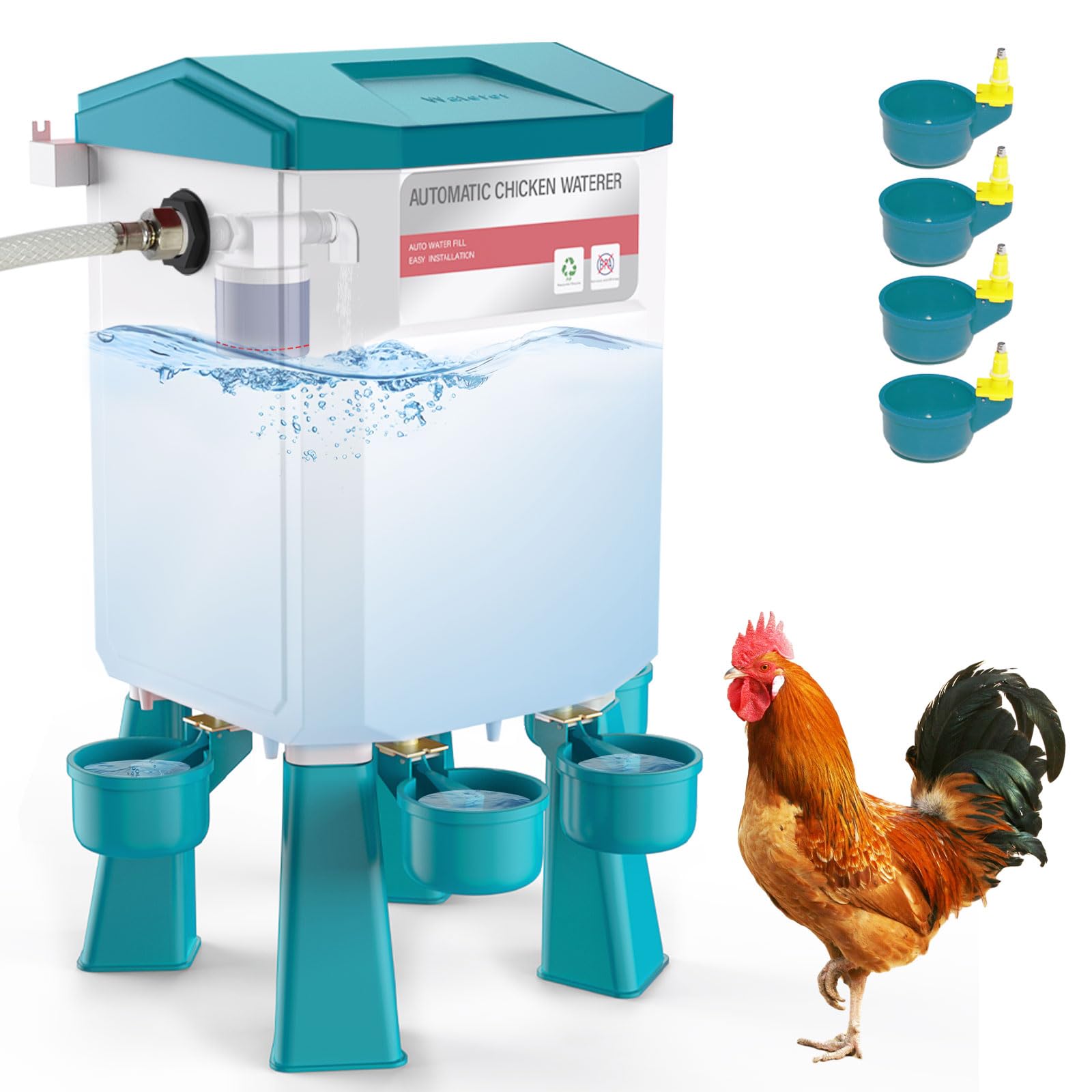 Bebedero automático para pollos controlado por flotador, agua azul para pollos con 4 tazas de agua, manguera de 13 pies, alimentad