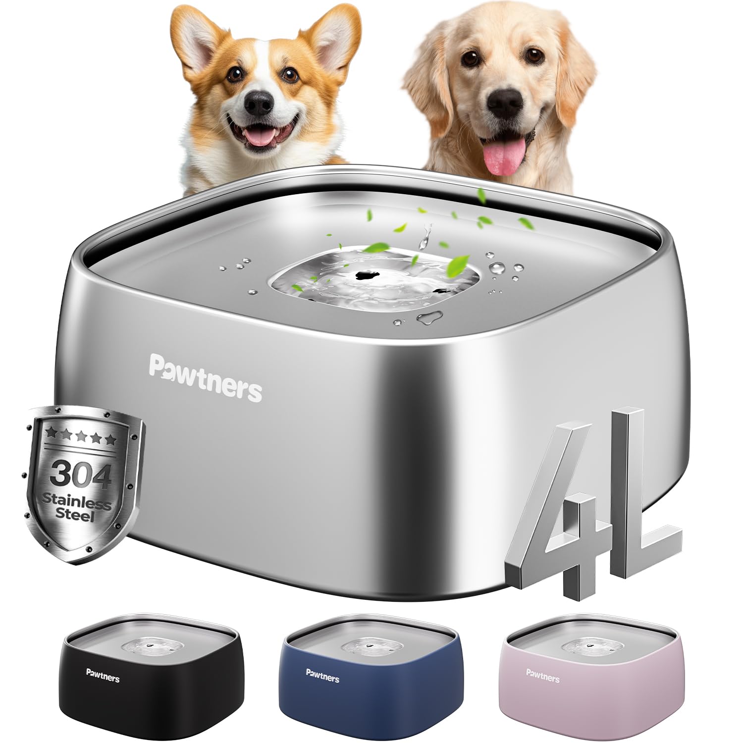 Cuenco de agua para perros sin derrames, de acero inoxidable, de 4 litros, con base antideslizante, a prueba de derrames, para beb