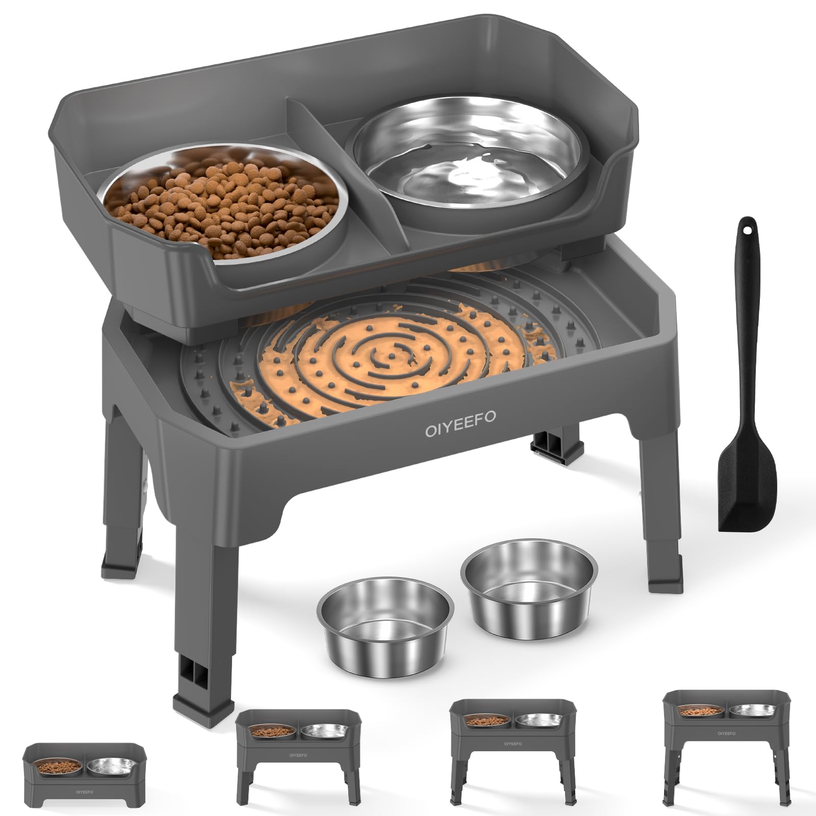 Cuencos elevados 3 en 1 para perros: 4 cuencos elevados de altura ajustable para perros con diseño a prueba de desorden – Plato pa