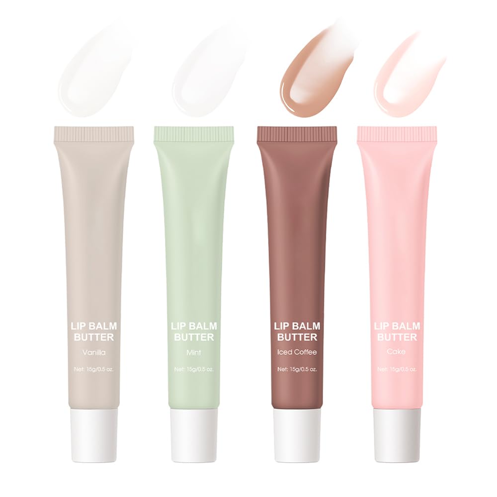 4 Flavors Lip Glossy Butter Balm Lip Tint Hydrating Lip Gloss, Soothes & Softens Dry Lips High Shine Nude Color Nourishing Lip Car