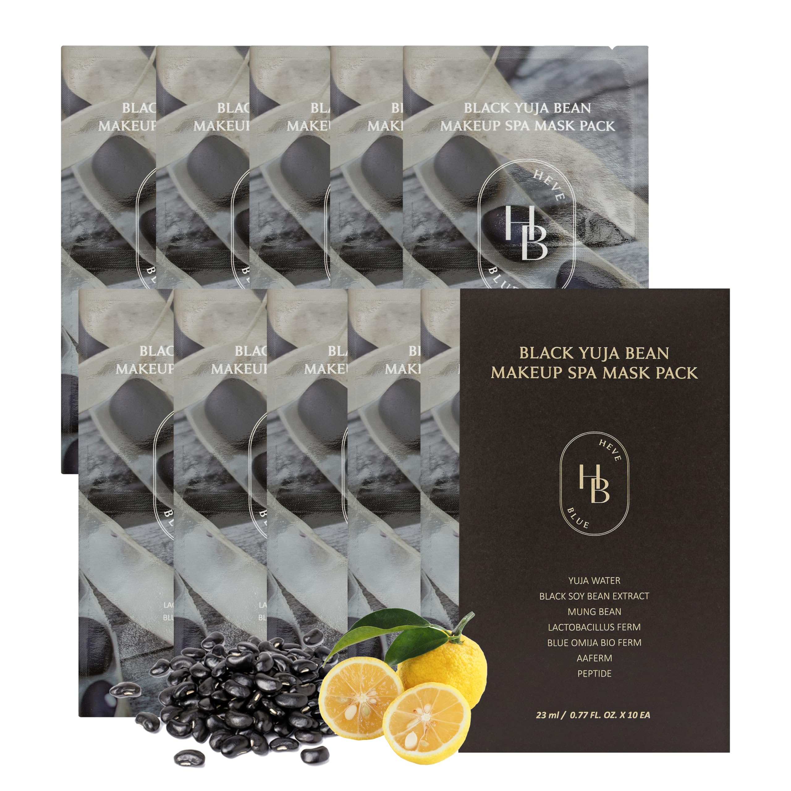 Black Yuja Bean Makeup Spa Mask Pack 10ea – 0.8 onzas líquidas de ampolla por hoja, nutritiva, piel sensible, cuidado de la piel c