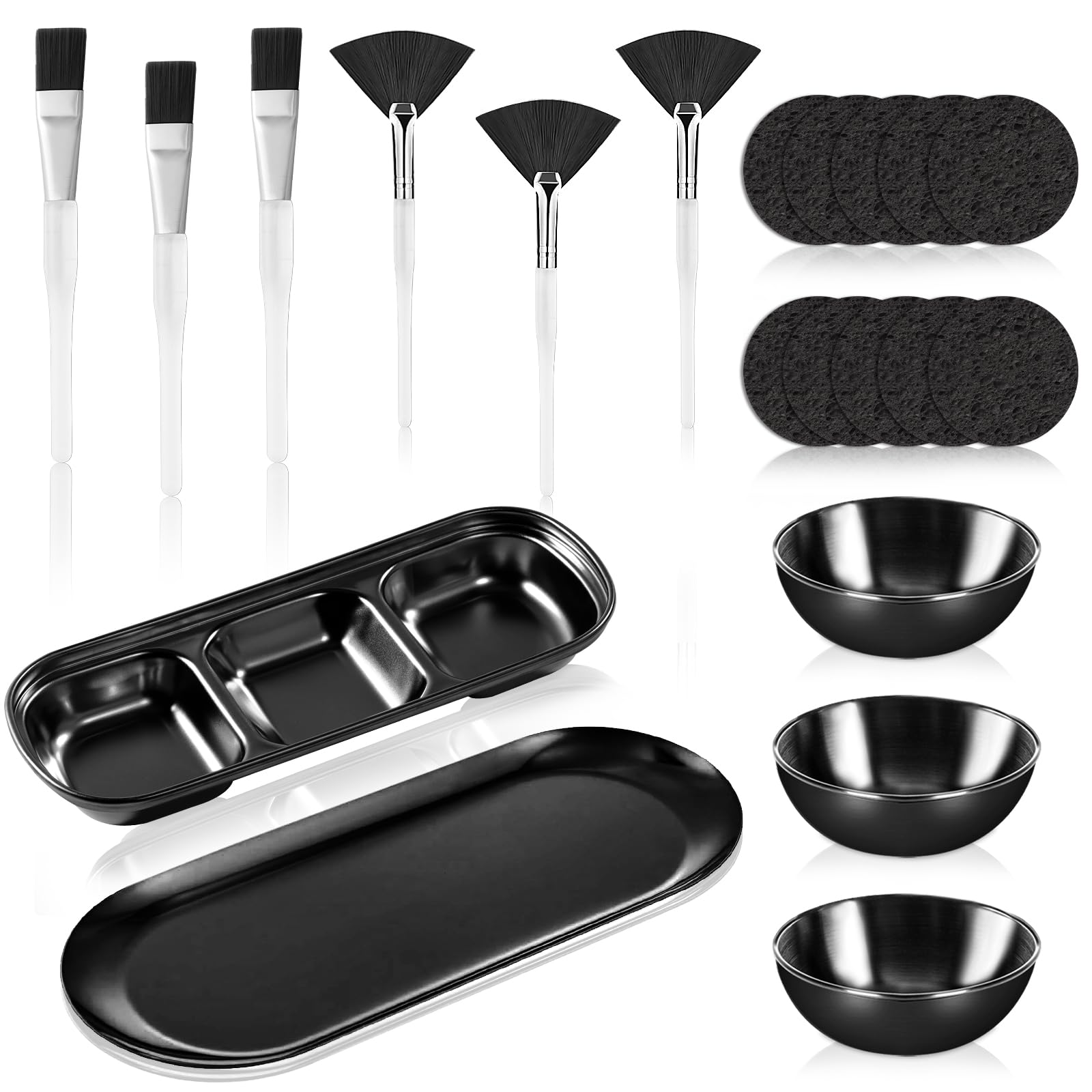 21 piezas de suministros de esteticista negro, 3 cuencos de mezcla de mascarillas faciales de acero inoxidable, 3 cepillos de aban