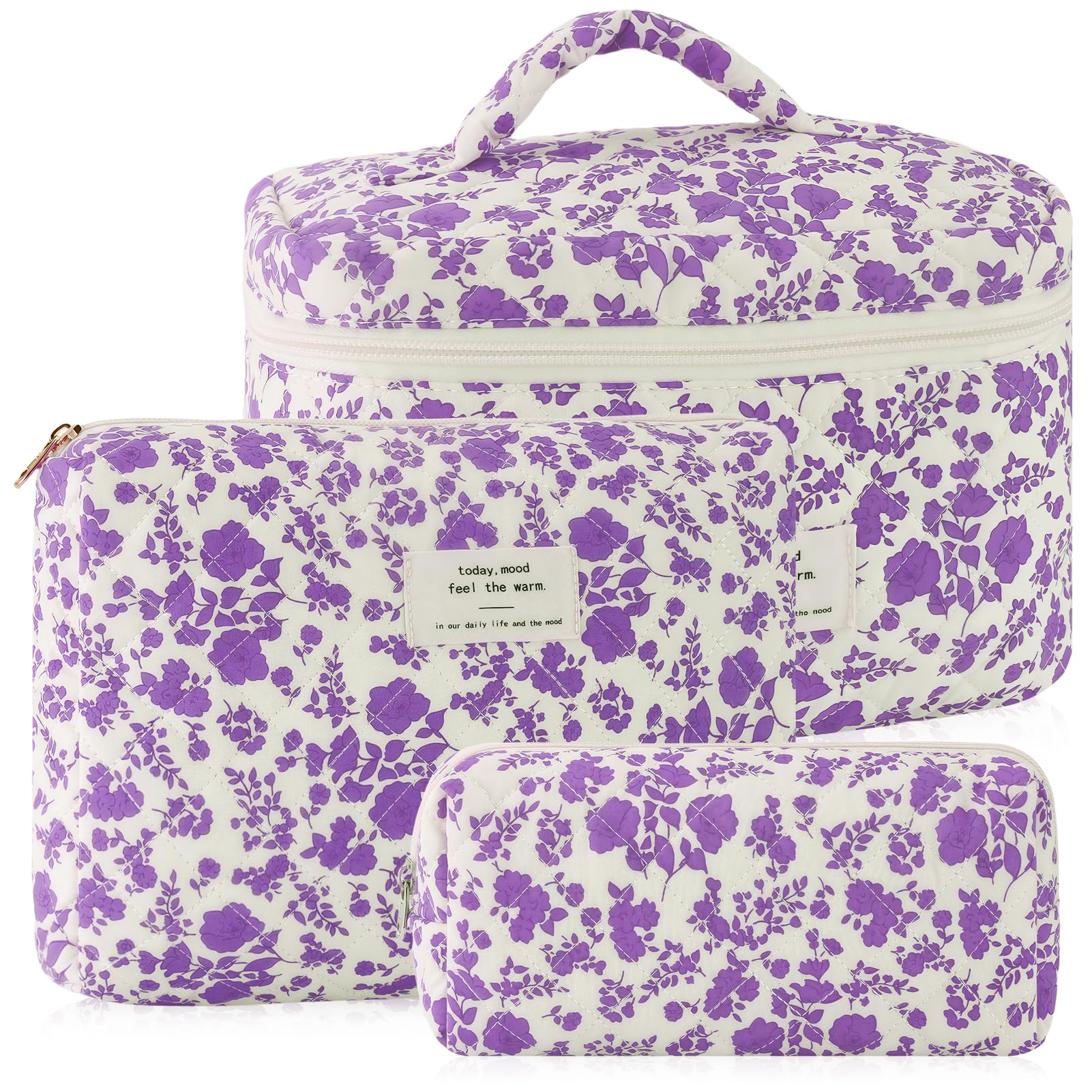 uekeboag Bolsa de maquillaje acolchada de viaje grande para mujer, bolsa de cosméticos de algodón floral, bolsa organizadora de ar