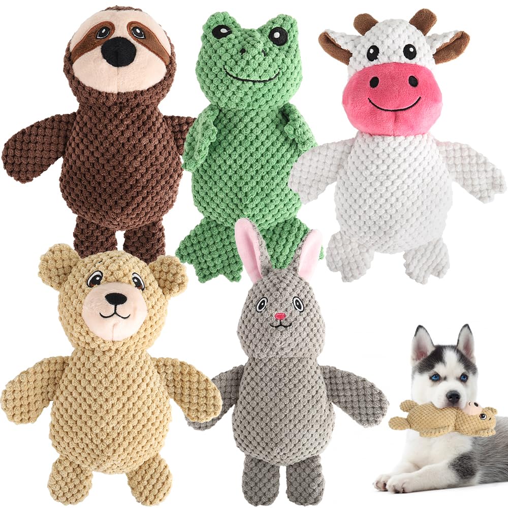 Paquete de 5 juguetes chirriantes para perros, juguetes duraderos para masticar con forma de animal, juguetes interactivos hechos