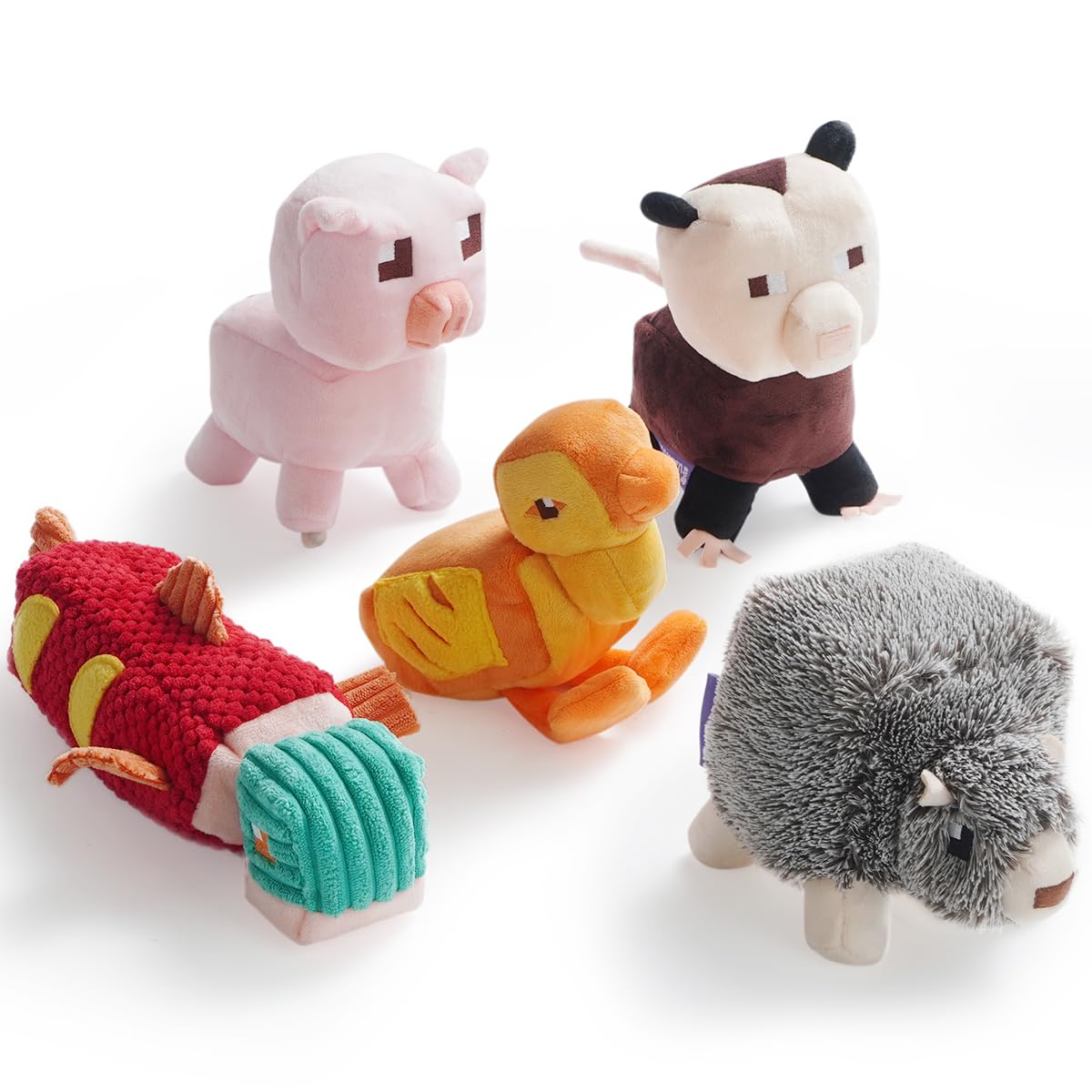 Pixel World – Juguetes para perros – Paquete de 5 juguetes chirriantes inspirados en videojuegos de felpa para perros, duraderos y