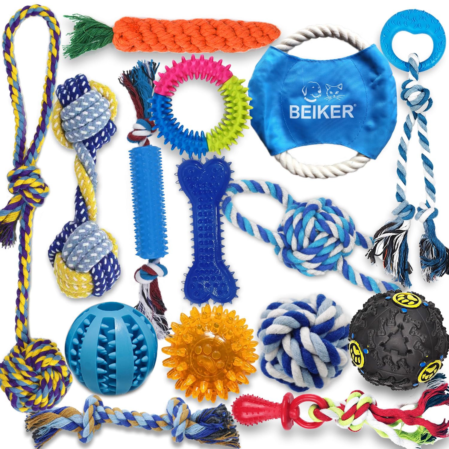 Beiker Juguetes masticables para dentición para perros, paquete de 15 juguetes resistentes para cachorros, de razas pequeñas, medi