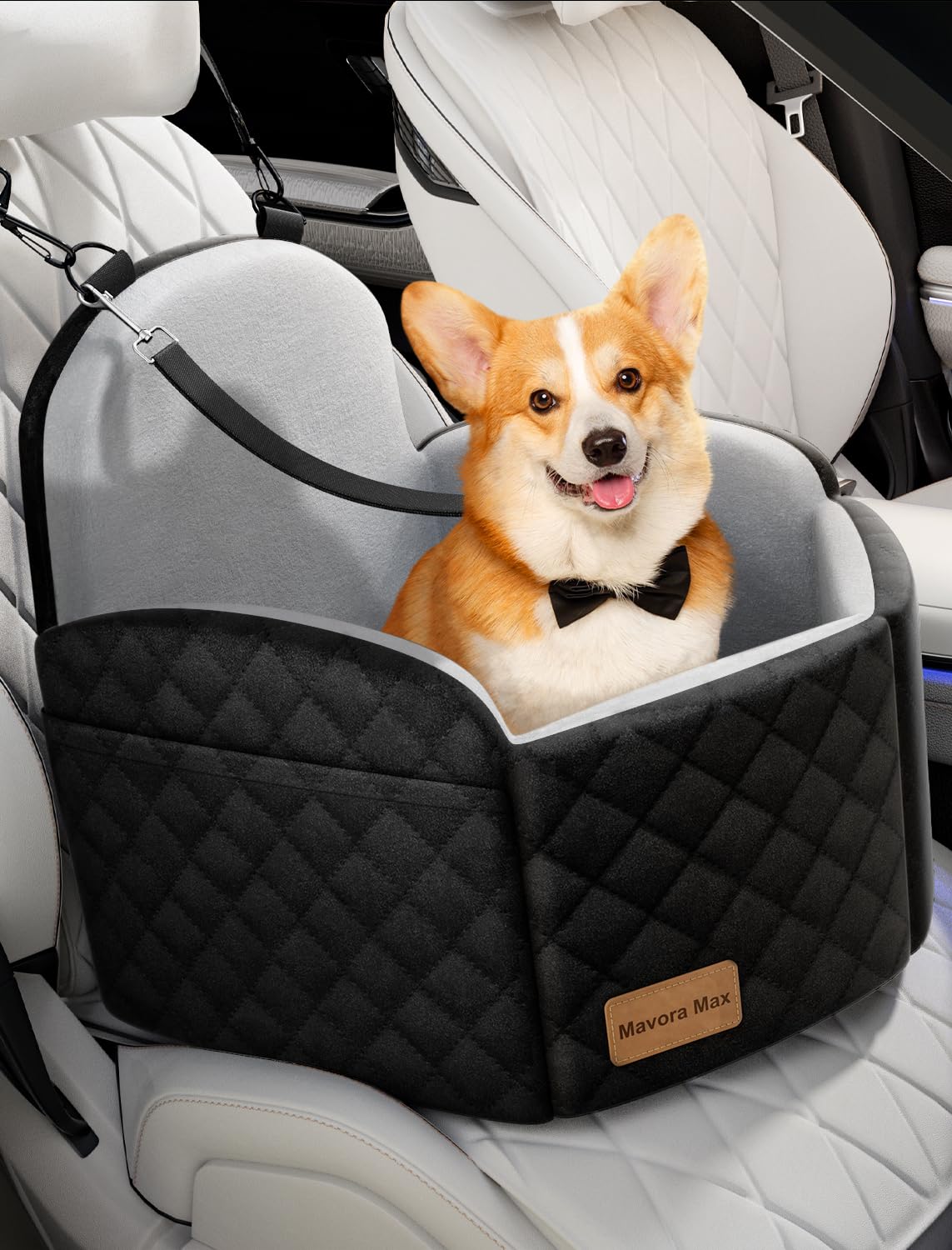 Asiento de automóvil para perros – Asiento elevador impermeable para perro con bolsillos de almacenamiento, correa de seguridad co