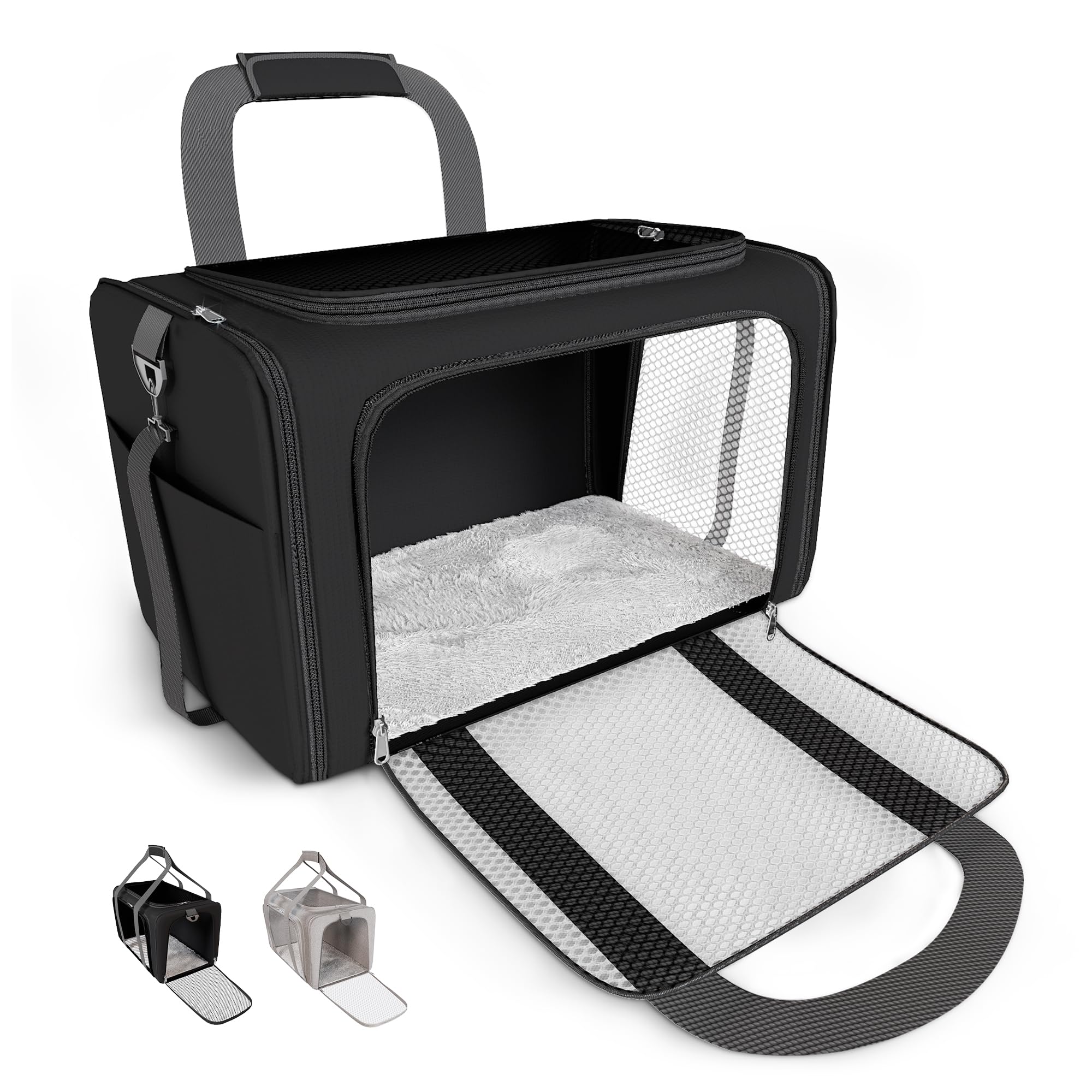 Transportador grande para gatos, jaula de viaje plegable para perros, portátil, de lados suaves, con alfombrilla de felpa súper su