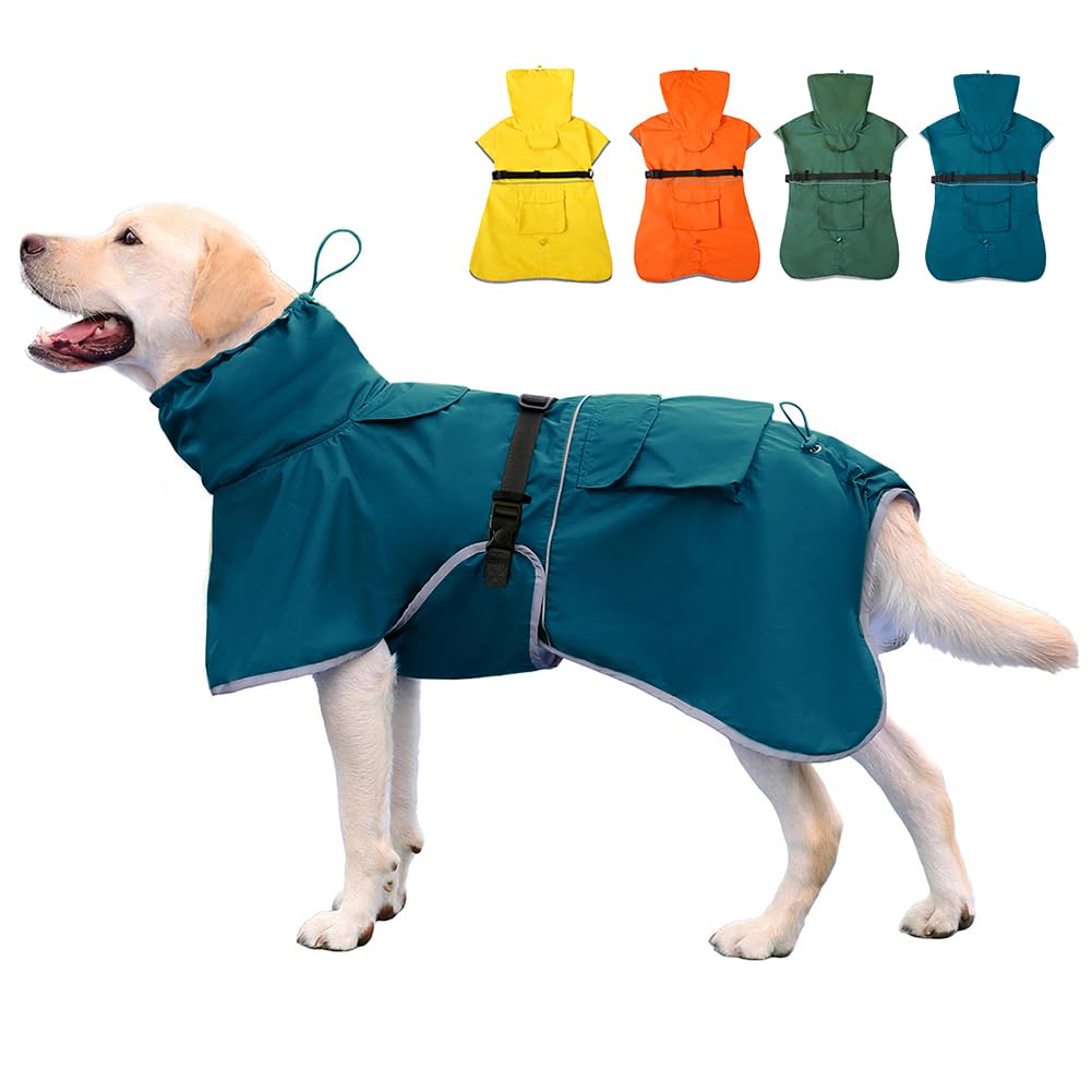 Impermeable para perro, ajustable con capucha, poncho deslizante para perros medianos y grandes, chaqueta impermeable reflectante