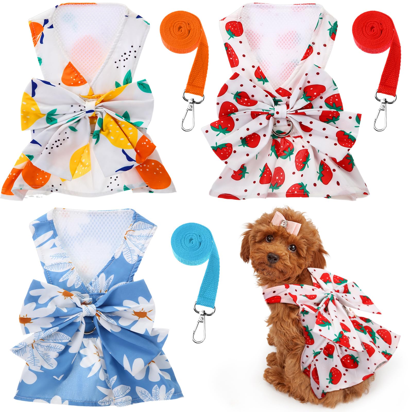 Juego de 3 piezas de arnés para perro, vestido y correa para perro, vestidos lindos para perro, estilos surtidos, ropa para cachor