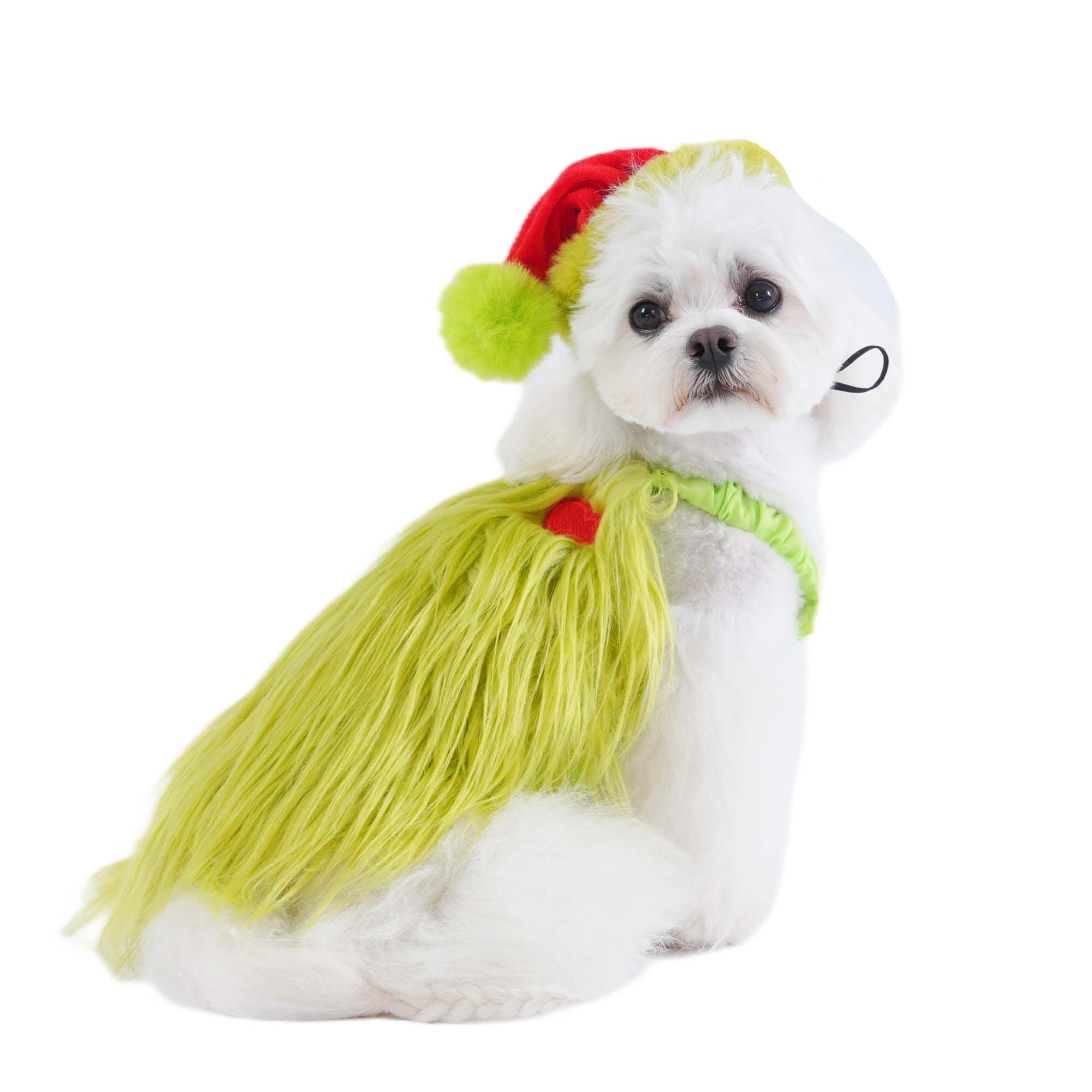 Furry Dog Green Monster Costume with Pet Christmas Hat,Dog Cat Christmas Halloween Costume Outfit Shirt Clothes for Small Medium L
