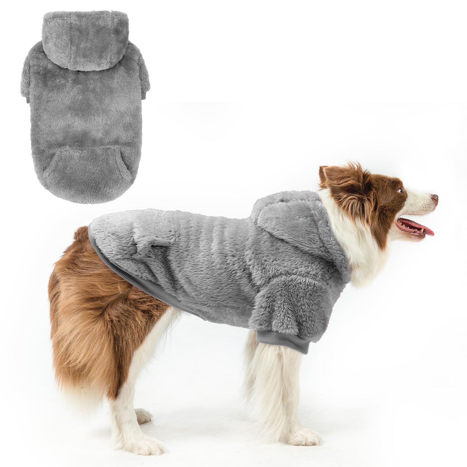 SCENEREAL Suéter mullido para perro grande, sudadera cálida de forro polar con sombrero y bolsillo, ropa de perro mediano/grande p