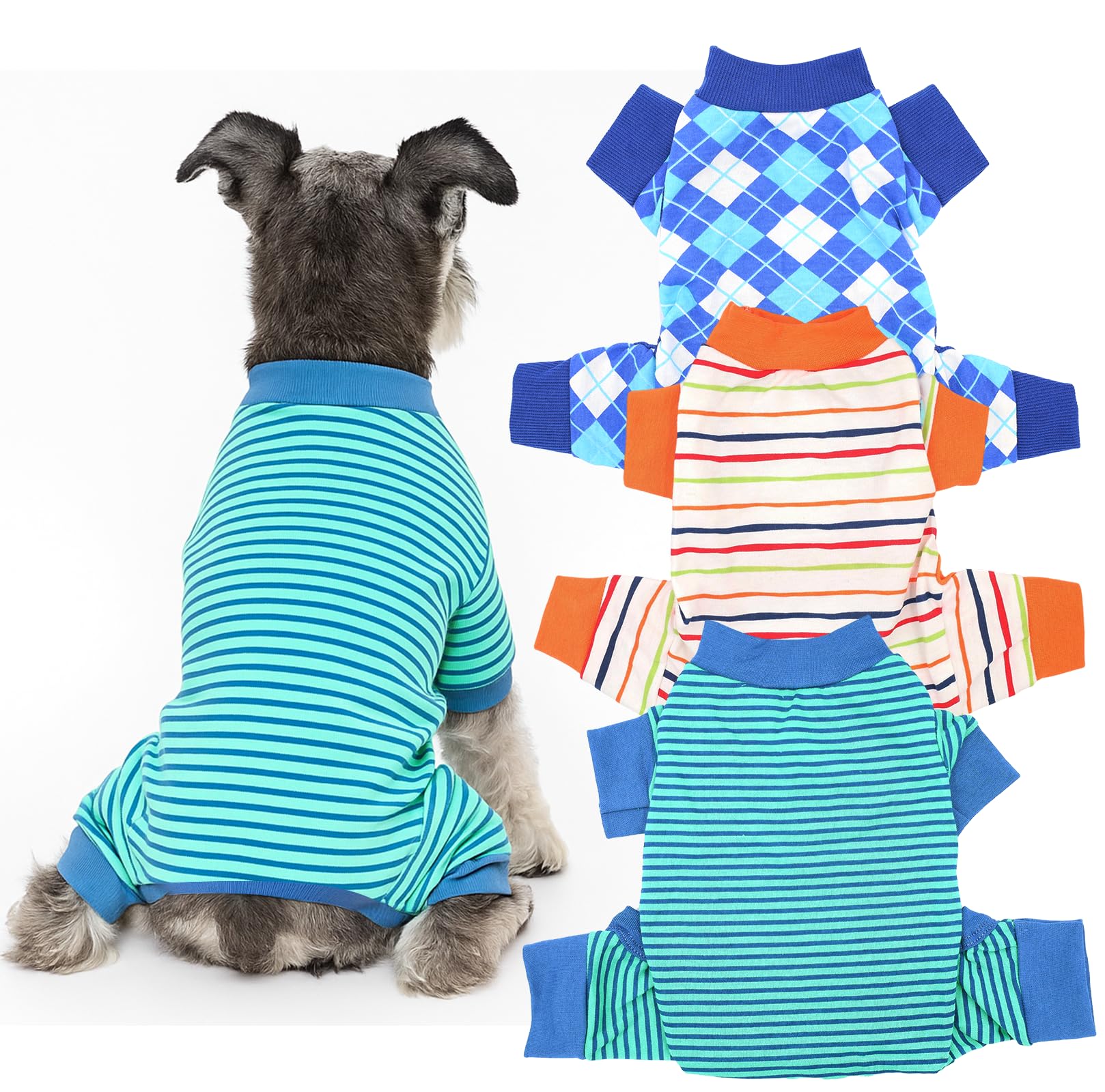 Paquete de 3 pijamas para perros pequeños, mameluco elástico con apertura amplia de cola y rodillas elásticas en la espalda, ropa