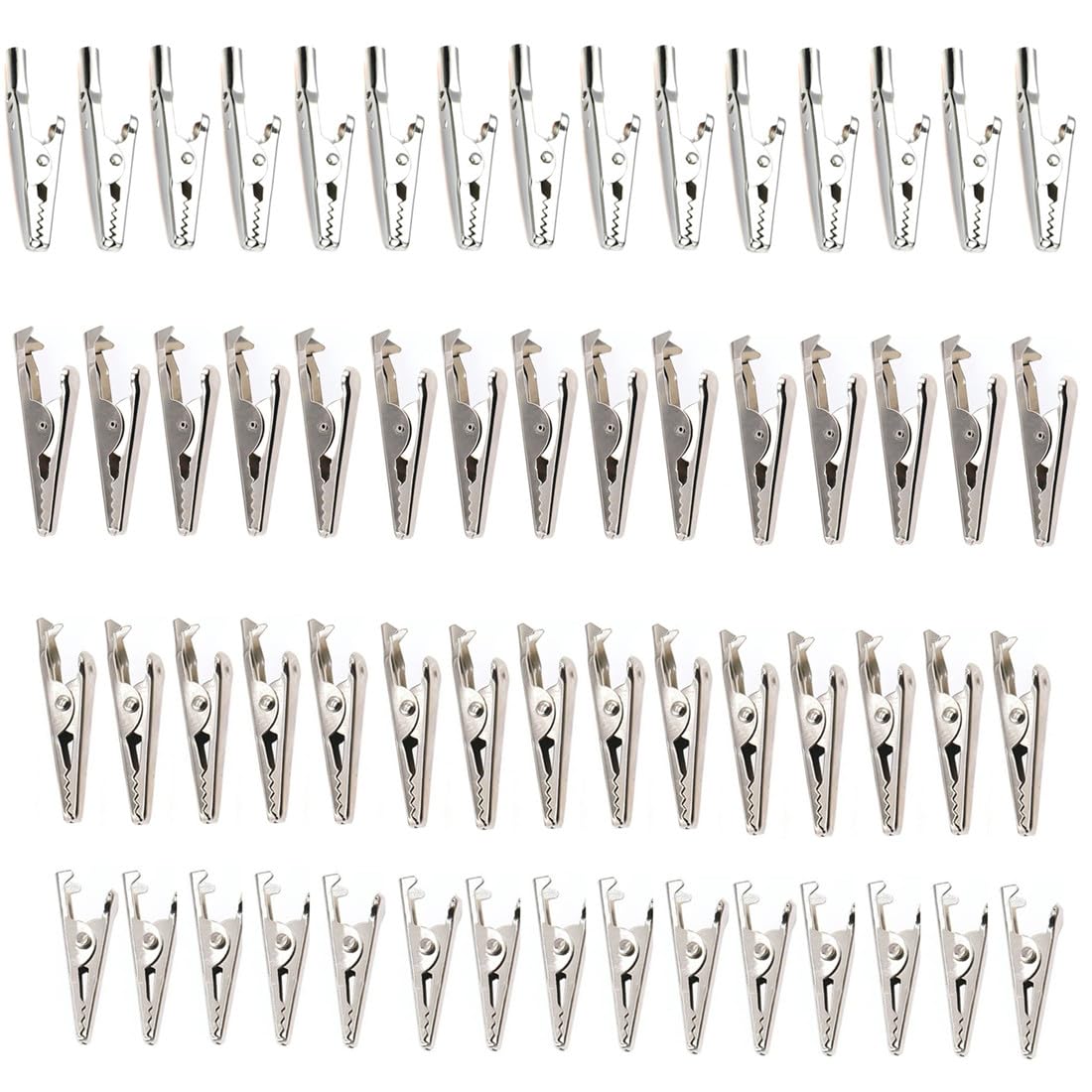 Pinzas de cocodrilo de acero niqueladas abrazaderas de cocodrilo plateadas, 80 unidades (4 tamaños: 1.102 in/1.378 in pequeño/1.77