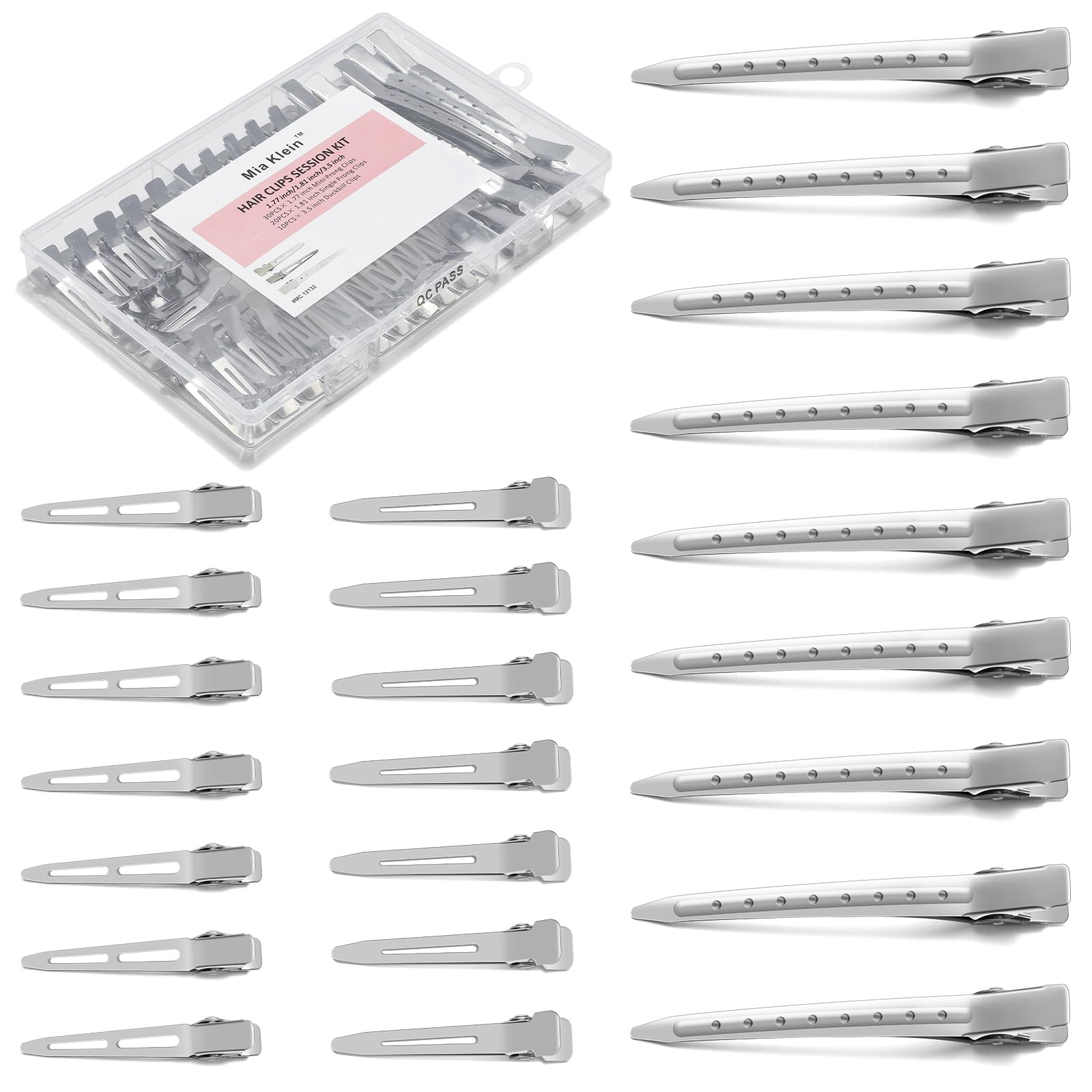Pinzas de pelo de metal plateado para mujer, diseño de pico de pato pequeño, 44 pinzas largas de rodillo de cocodrilo, salón, lazo
