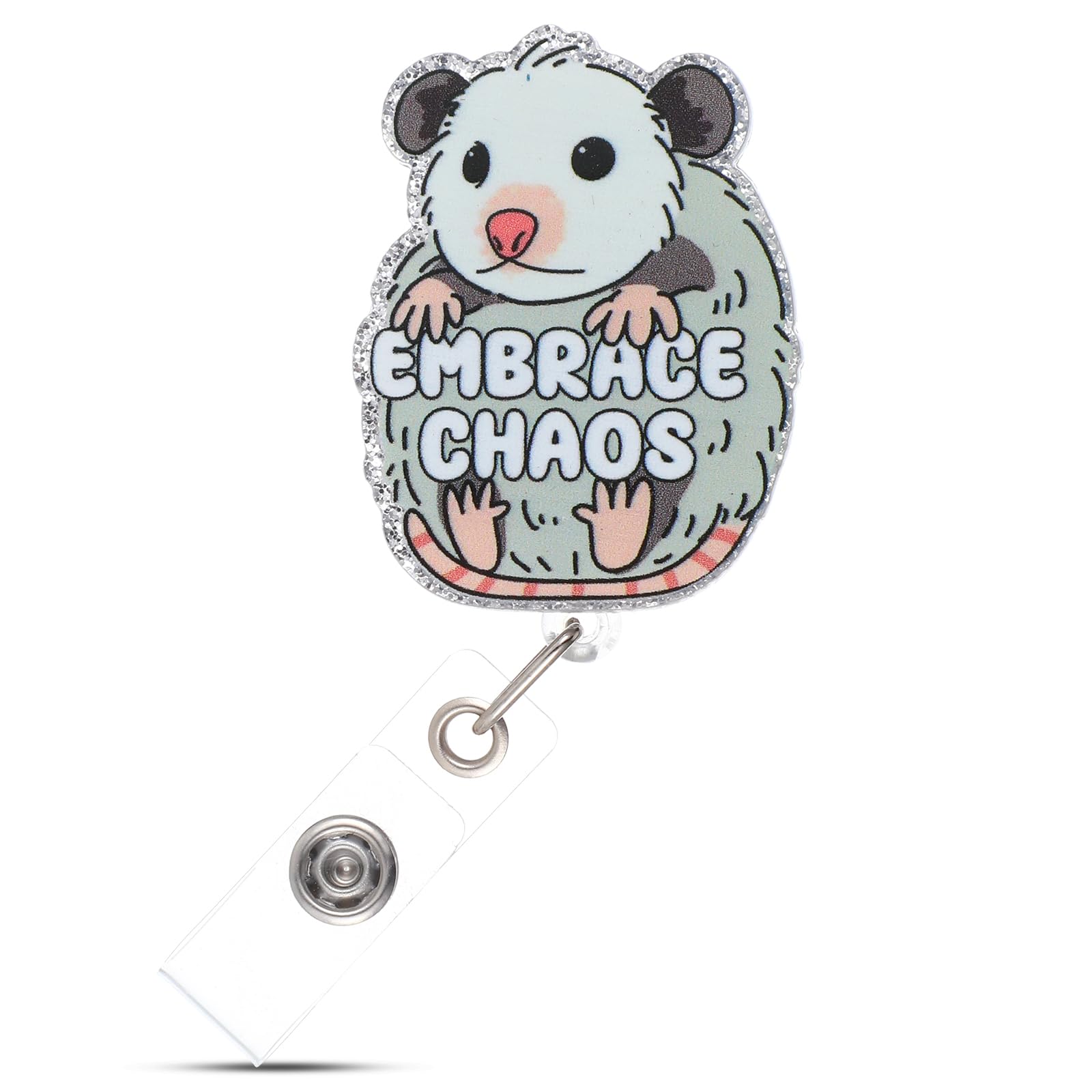 Opossum Badge Reel Retractable, Cute Acrylic ID Holder with Metal Clip Badge Accessories for Nurse Teacher Medical Worker Office S