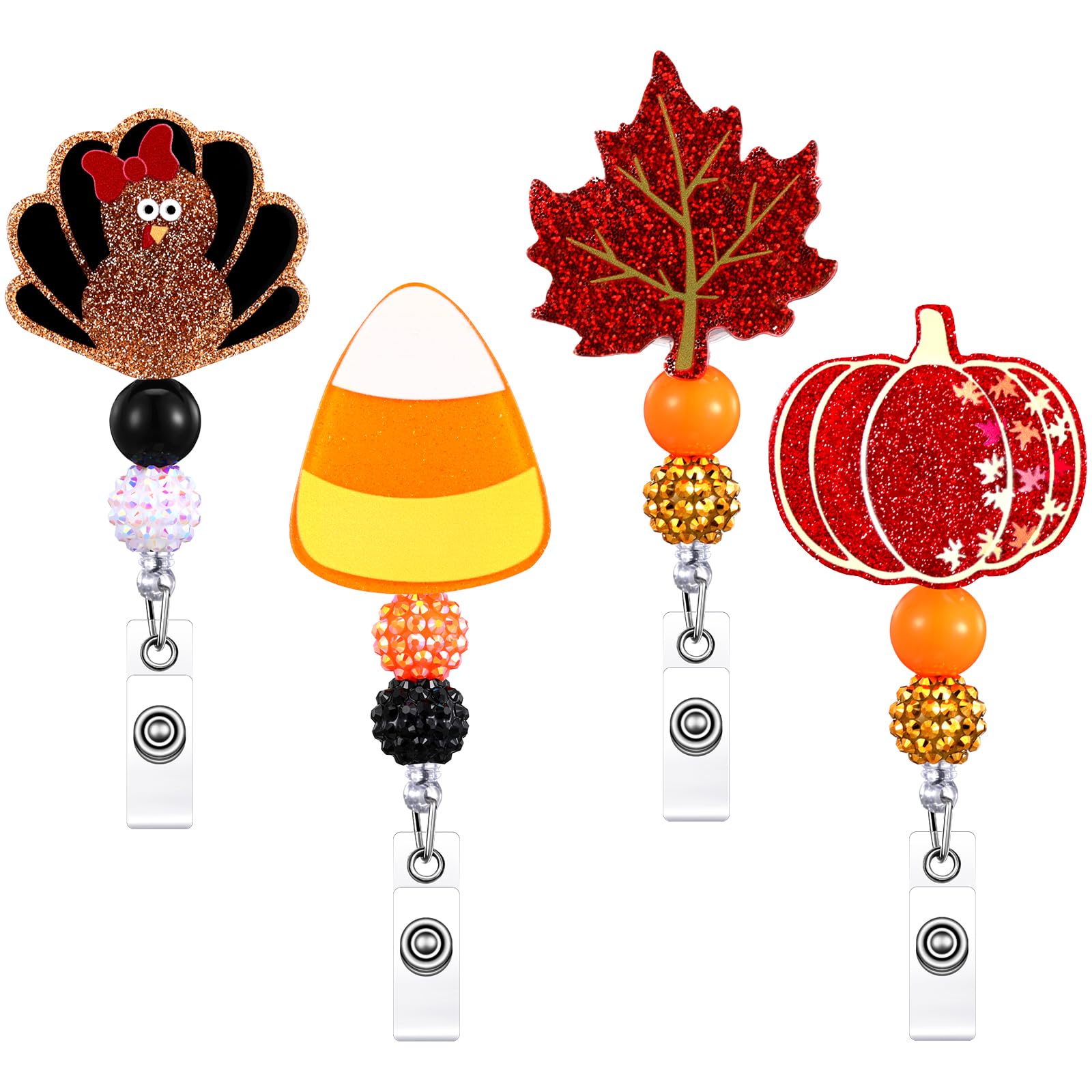 Giegxin 4 carretes retráctiles para insignias de otoño, calabazas, caramelo, maíz, hoja de arce, pavo, enfermera, identificación c