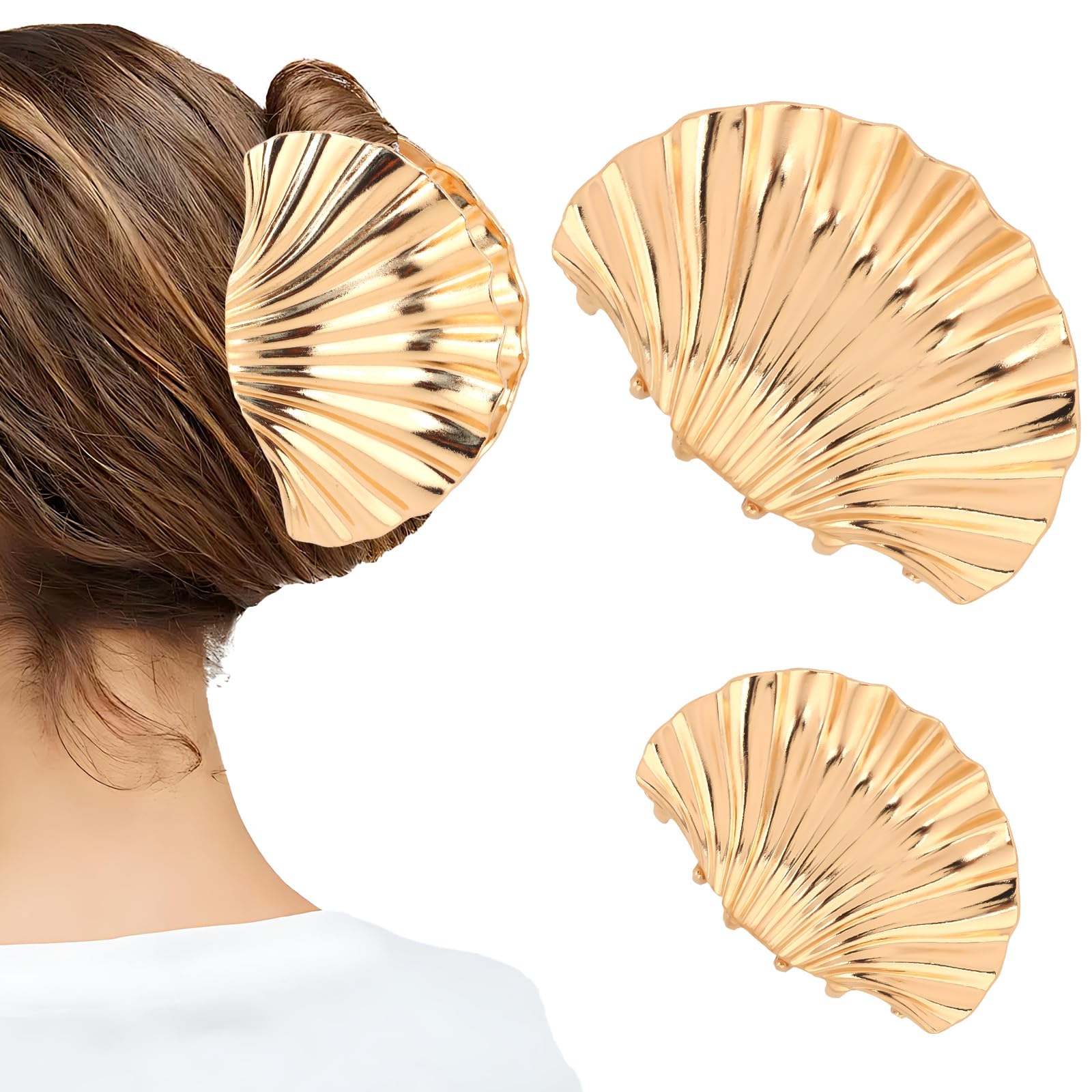Pinza de metal con diseño de concha dorada, grande, extra grande y pequeña, pinzas para el cabello de playa gruesa, accesorios par