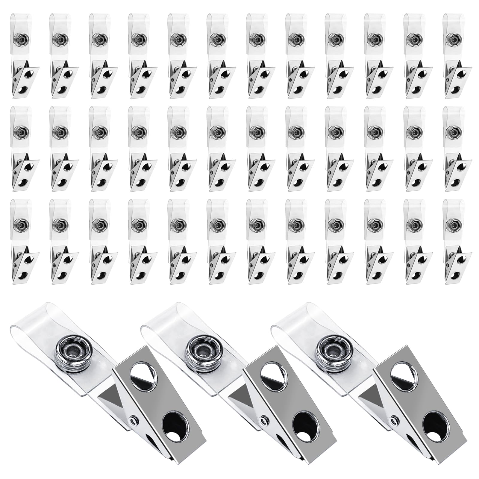 Paquete de 400 clips de metal para tarjetas de identificación de doble agujero con correas de PVC transparente para tarjetas de id