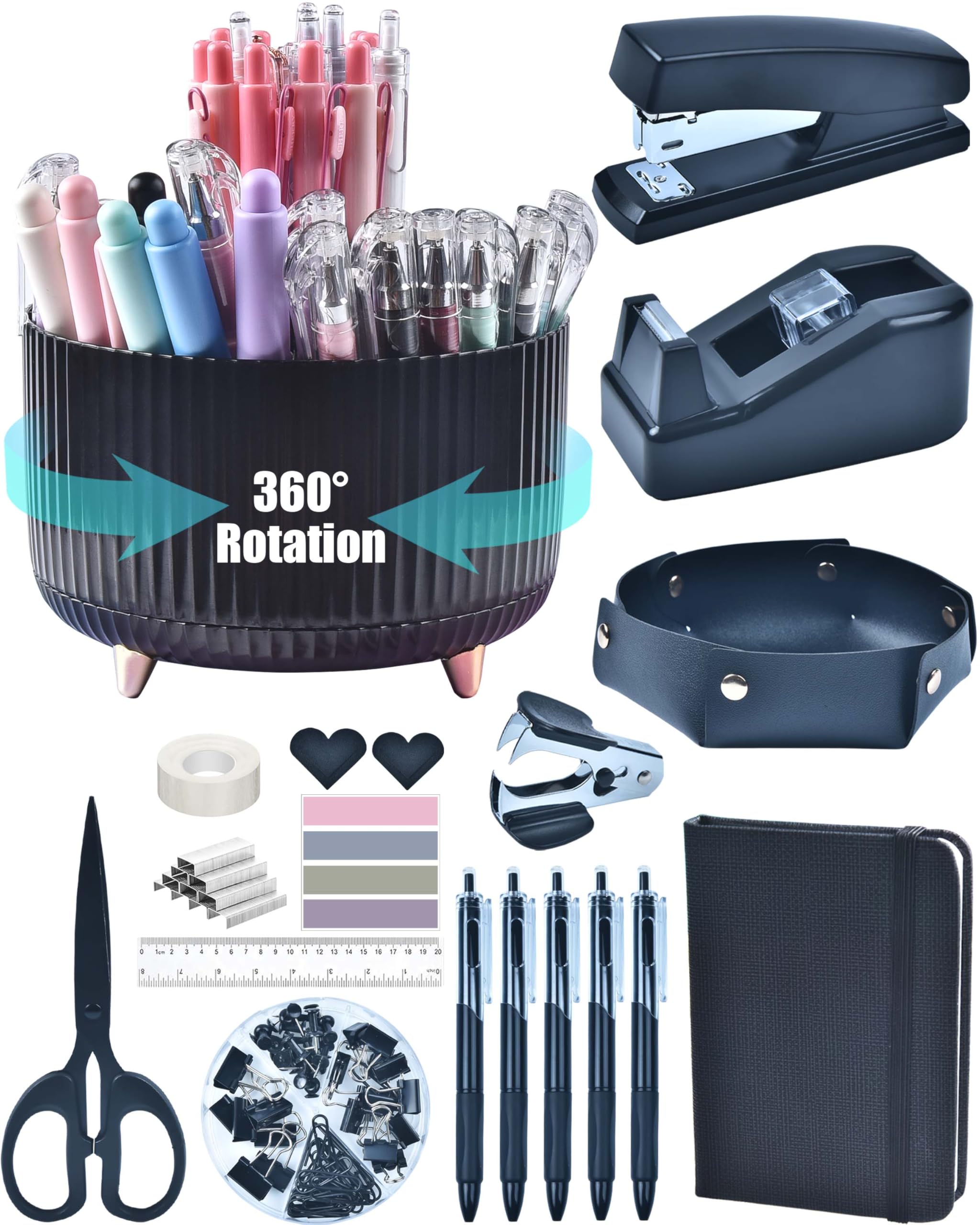 Accesorios de escritorio negros, suministros de oficina, organizador de escritorio con dispensador de cinta, grapadora, removedor