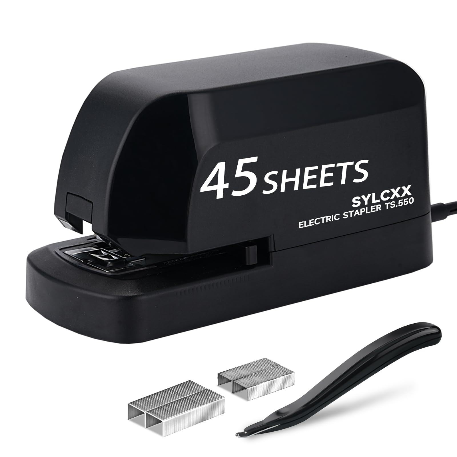 Engrapadora eléctrica para escritorio, capacidad de 45 hojas, incluye 1500 grapas y removedor de grapas, sin atascos, grapado más