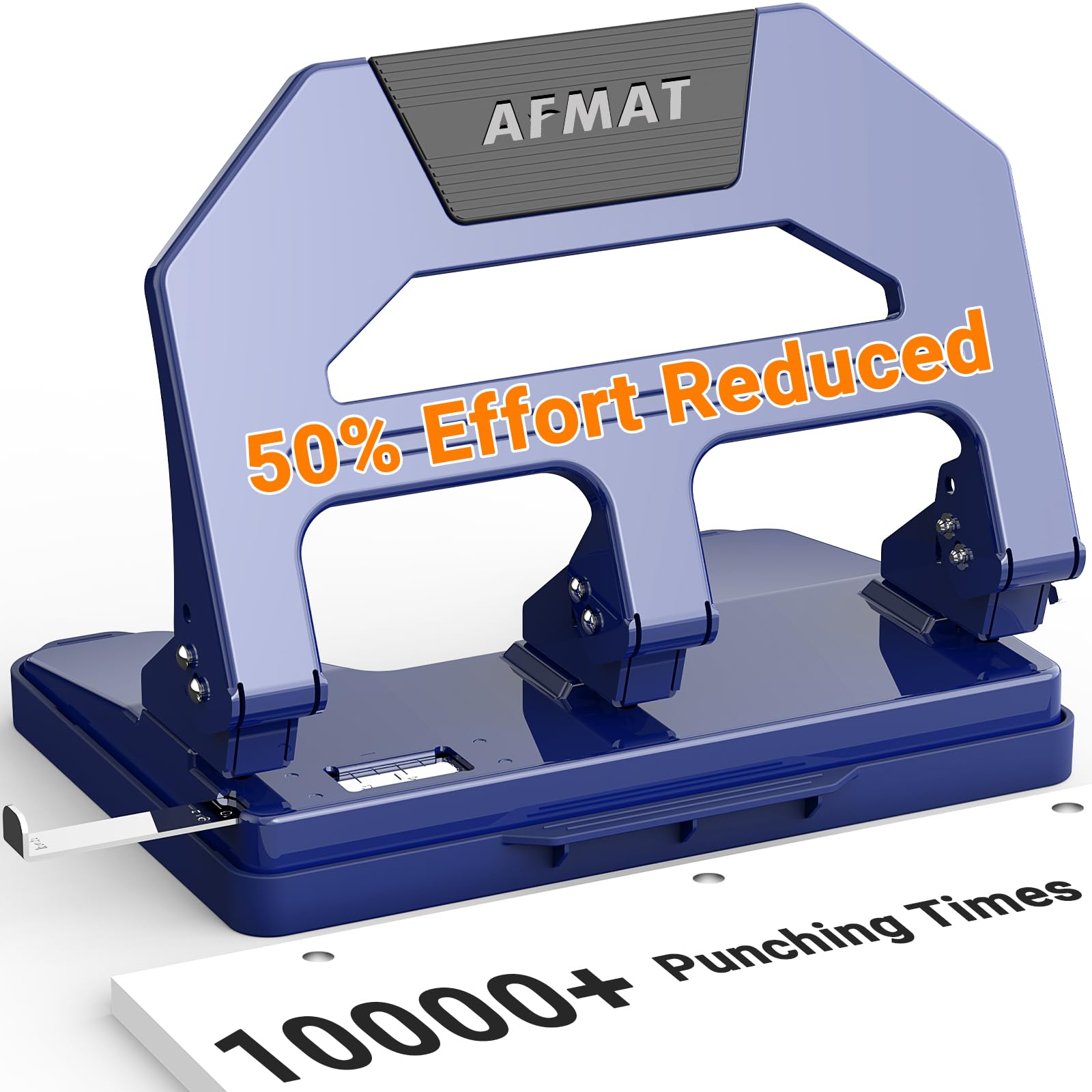 AFMAT Perforadora de 3 agujeros resistente, perforadora de tres agujeros de 40 hojas, perforadora de papel con un esfuerzo reducid