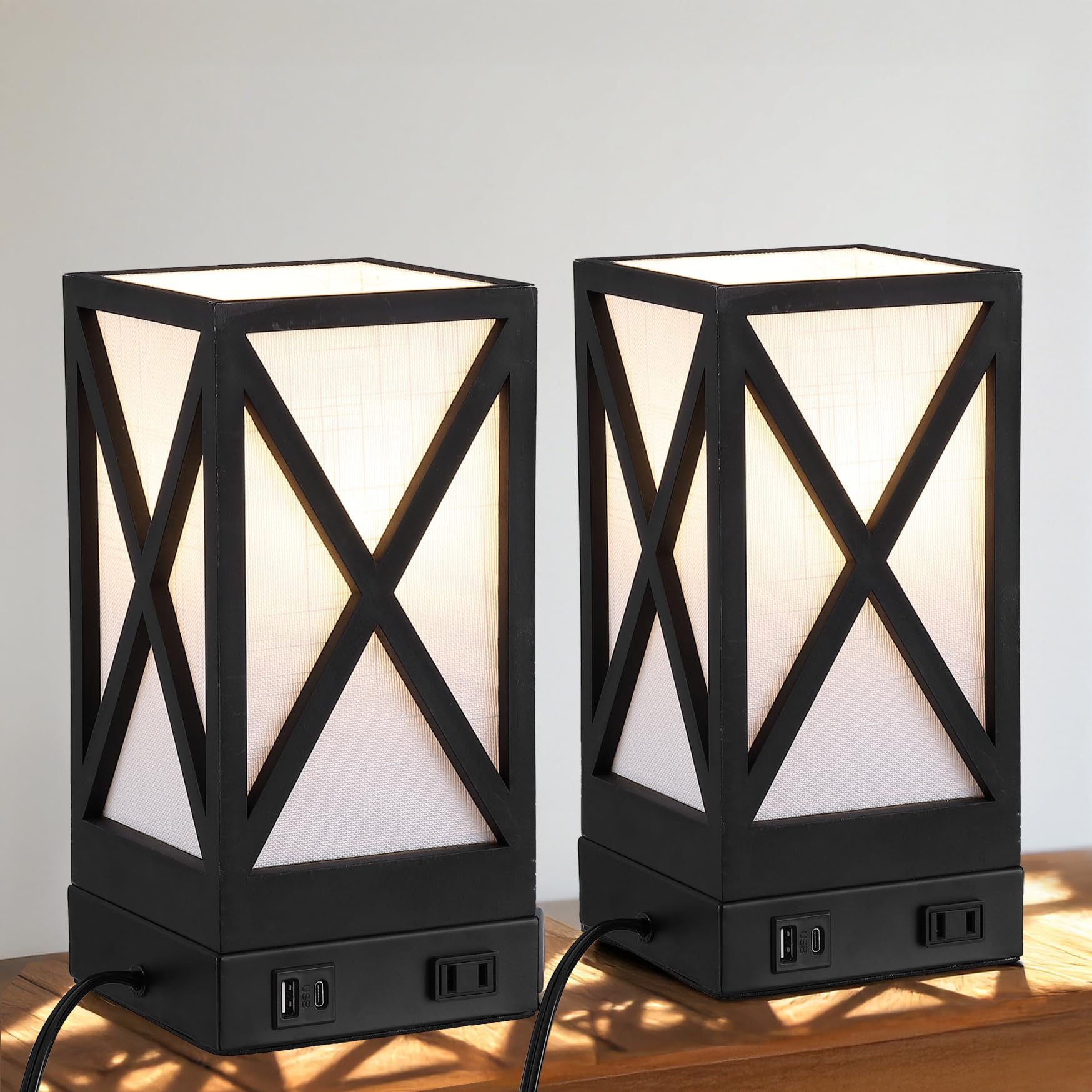 Lámpara de mesa, juego de 2 lámparas rústicas de mesita de noche, lámpara de escritorio con puertos de carga USB, salida de CA, lá