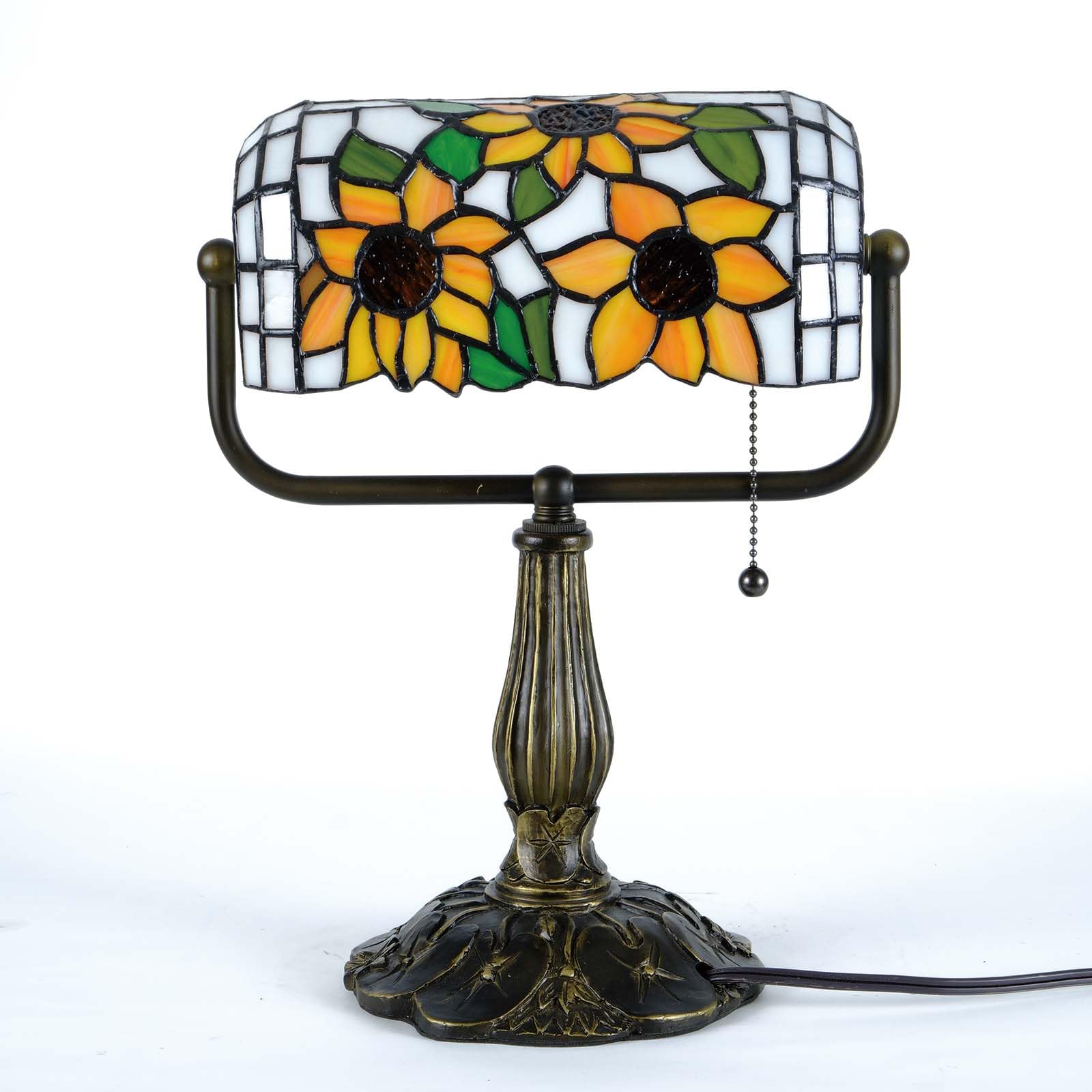 Sunflower Tiffany Bankers Desk Lamp,Handcrafted Stained Glass Piano Light for Office, Study Decor,Vintage Tiffany-Style Lamp with