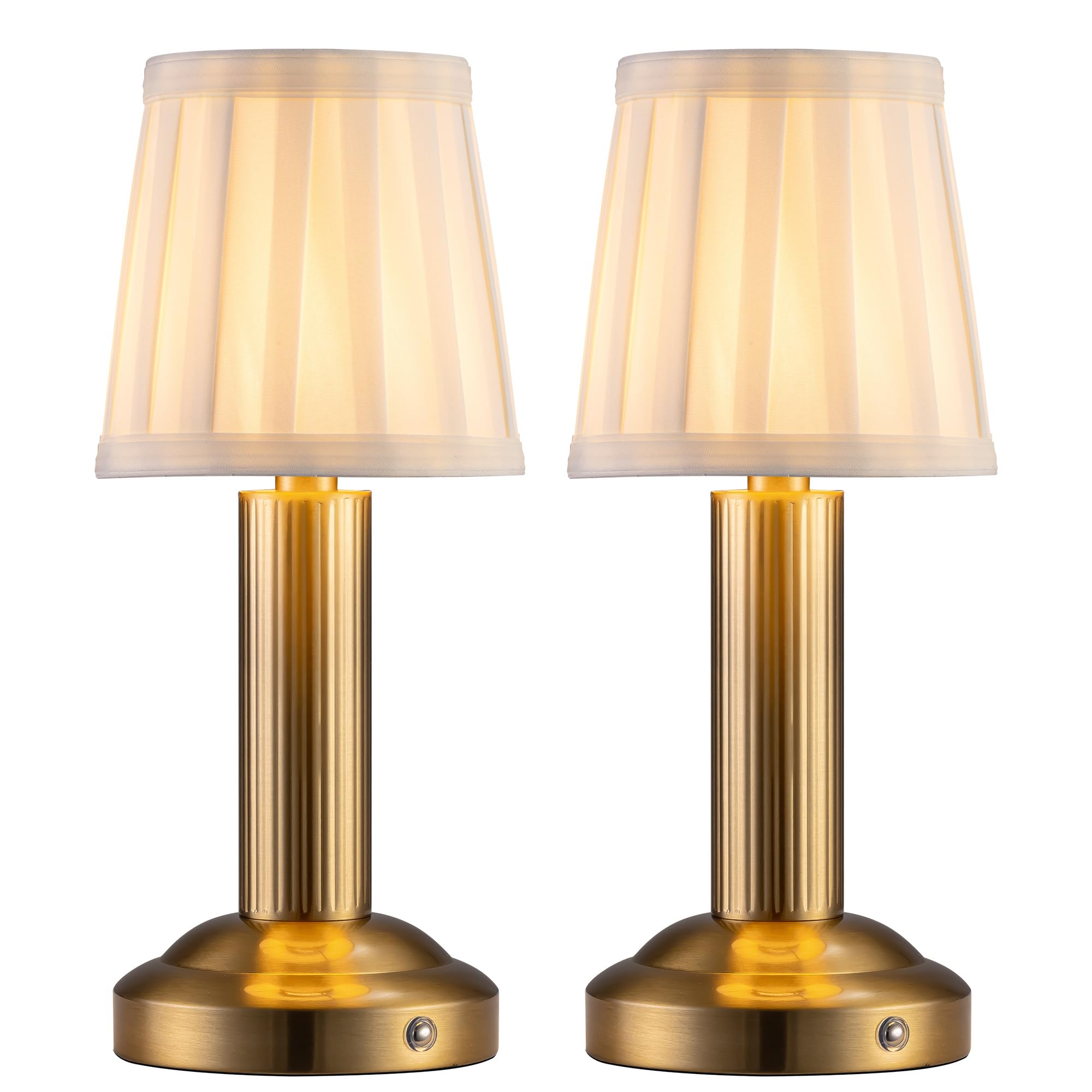 Mini lámpara de mesa inalámbrica, paquete de 2, lámpara táctil regulable de 11.4 pulgadas con pantalla de tela, pequeñas lámparas