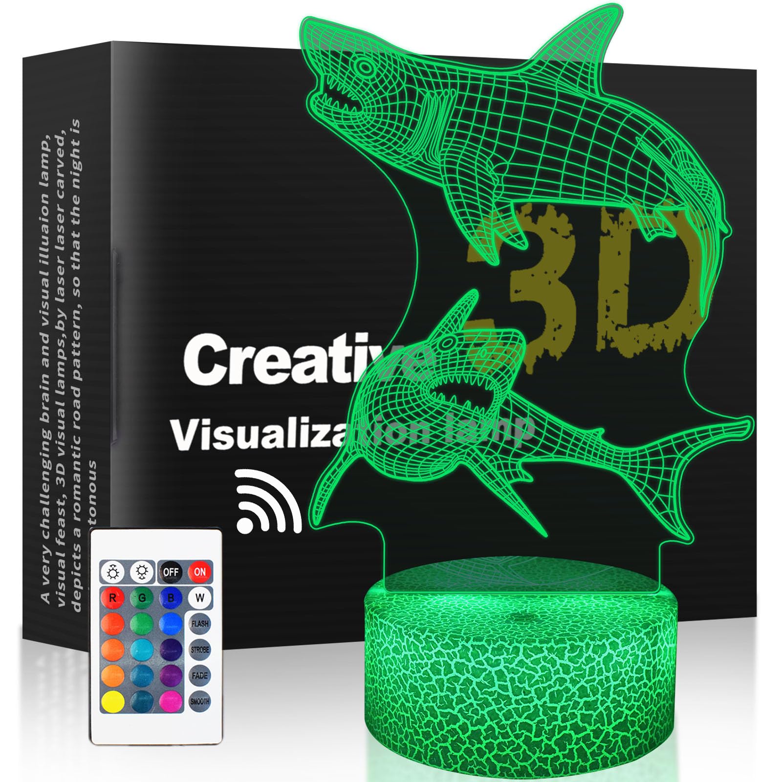 Shark 3D Illusion Night Light Animal, USB LED Table Lamp with Touch Sensor and 16 Color Change, Shark Decor for Kids Room, Boy Gir