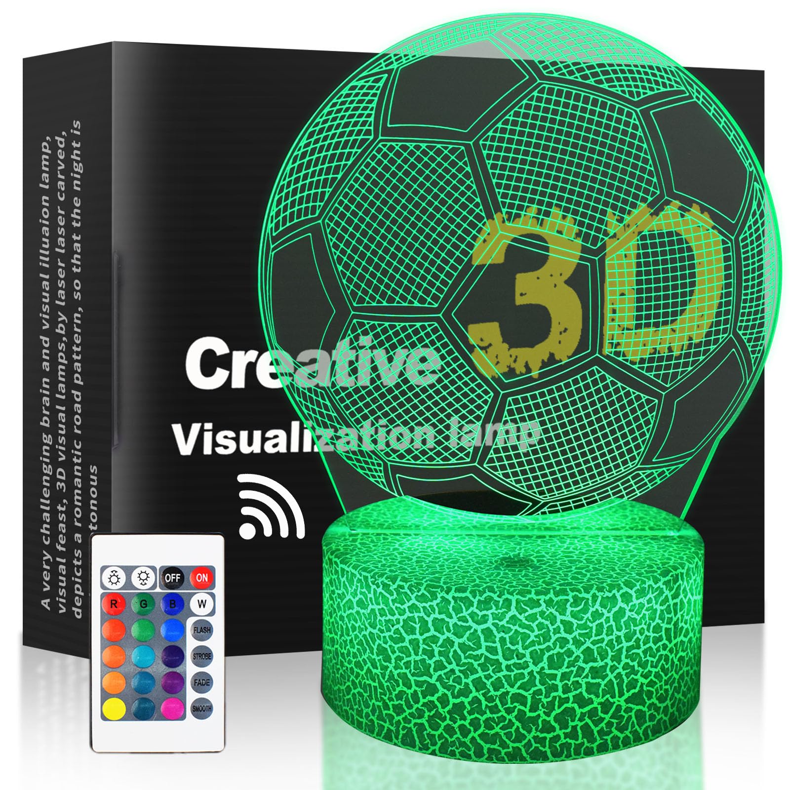 Soccer 3D Illusion Night Light, USB LED Table Lamp with Touch Sensor and 16 Color Change, Soccer Decor for Kids Room, Boy Girls Bi