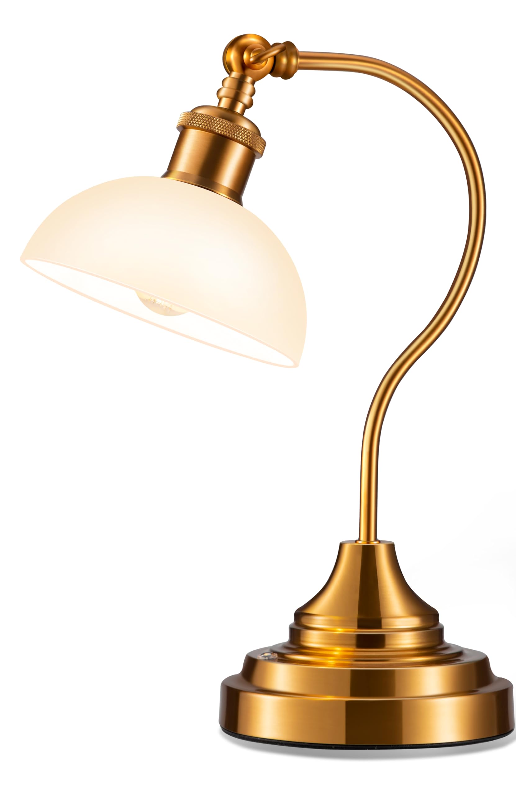 Bling – Lámpara de escritorio de mediados de siglo de latón con pantalla moderna de banqueros dorados, luz LED de 18 pulgadas, lám