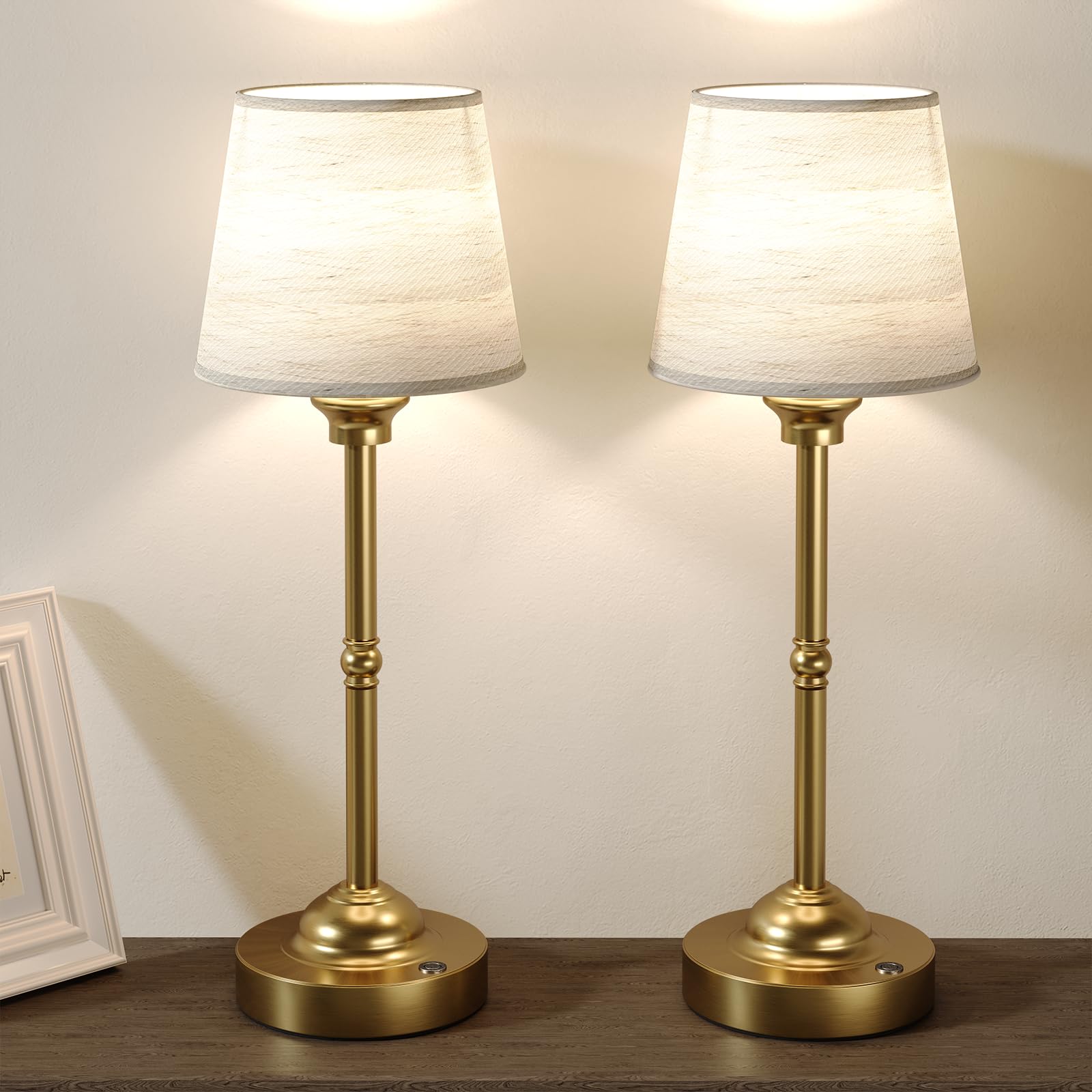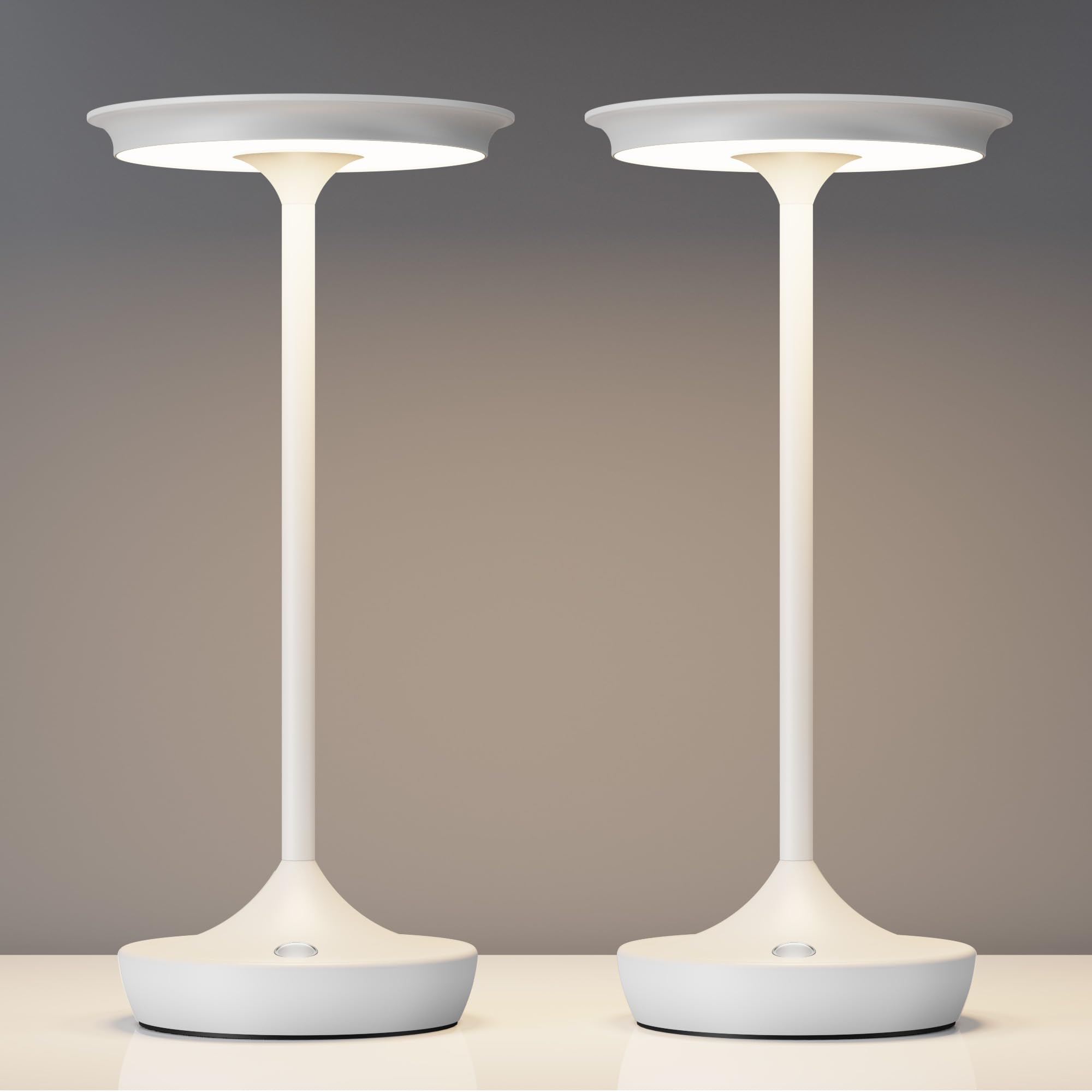 2-Pack Cordless LED Table Lamps 6000mAh Rechargeable Lamp Battery Operated Table Lamp Portable Desk Lamp with Fabric Shade, Steple