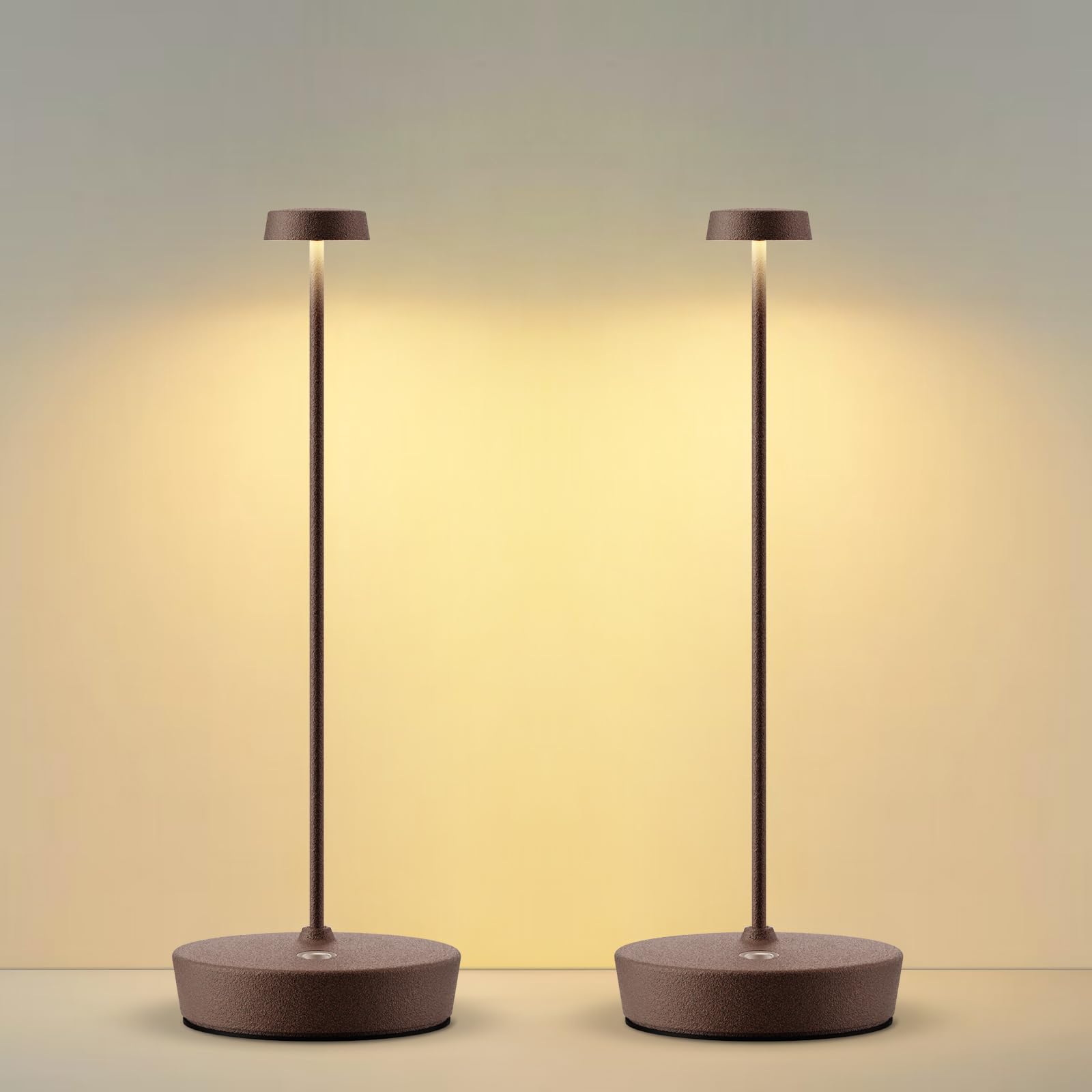 Paquete de 2 lámparas de mesa LED inalámbricas, lámparas de escritorio de batería recargable, lámparas de mesa de batería de metal