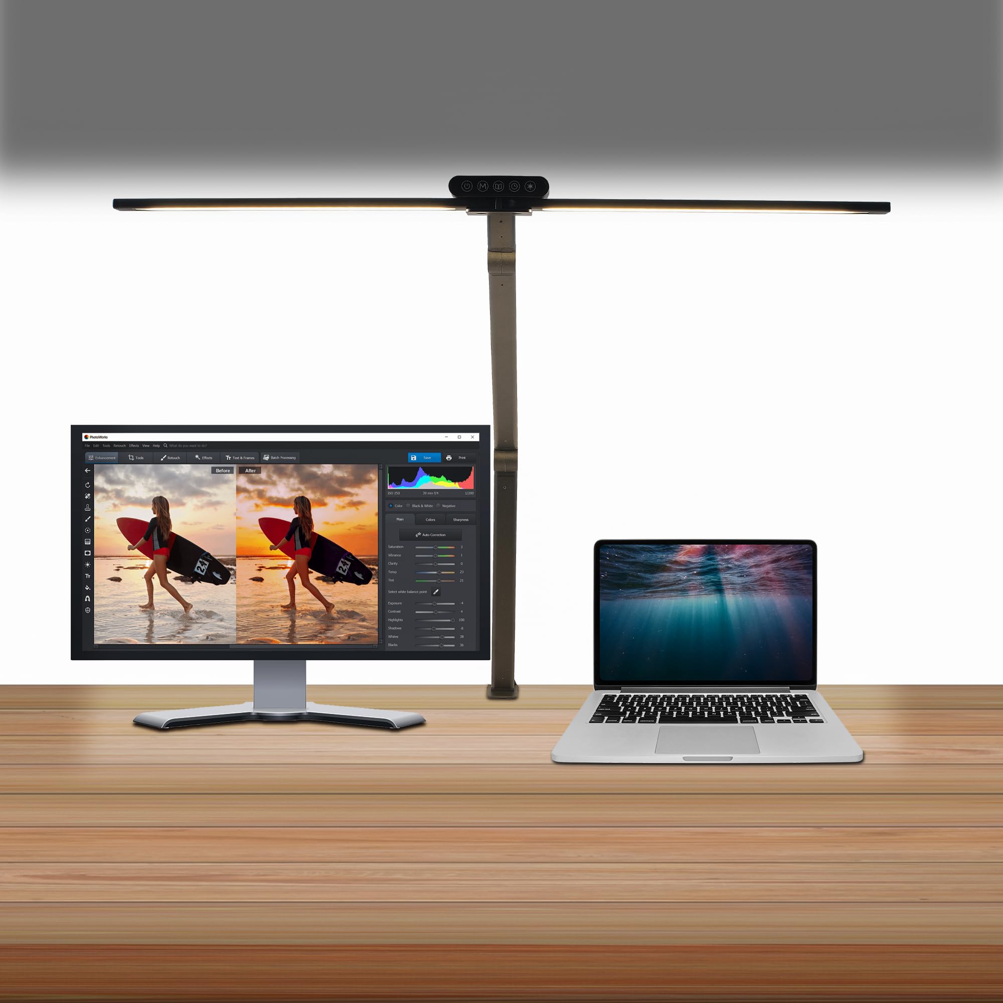 Lámpara de escritorio, 31.5 pulgadas de ancho 24 W para oficina en casa, luz de escritorio con control de detección de gestos, reg