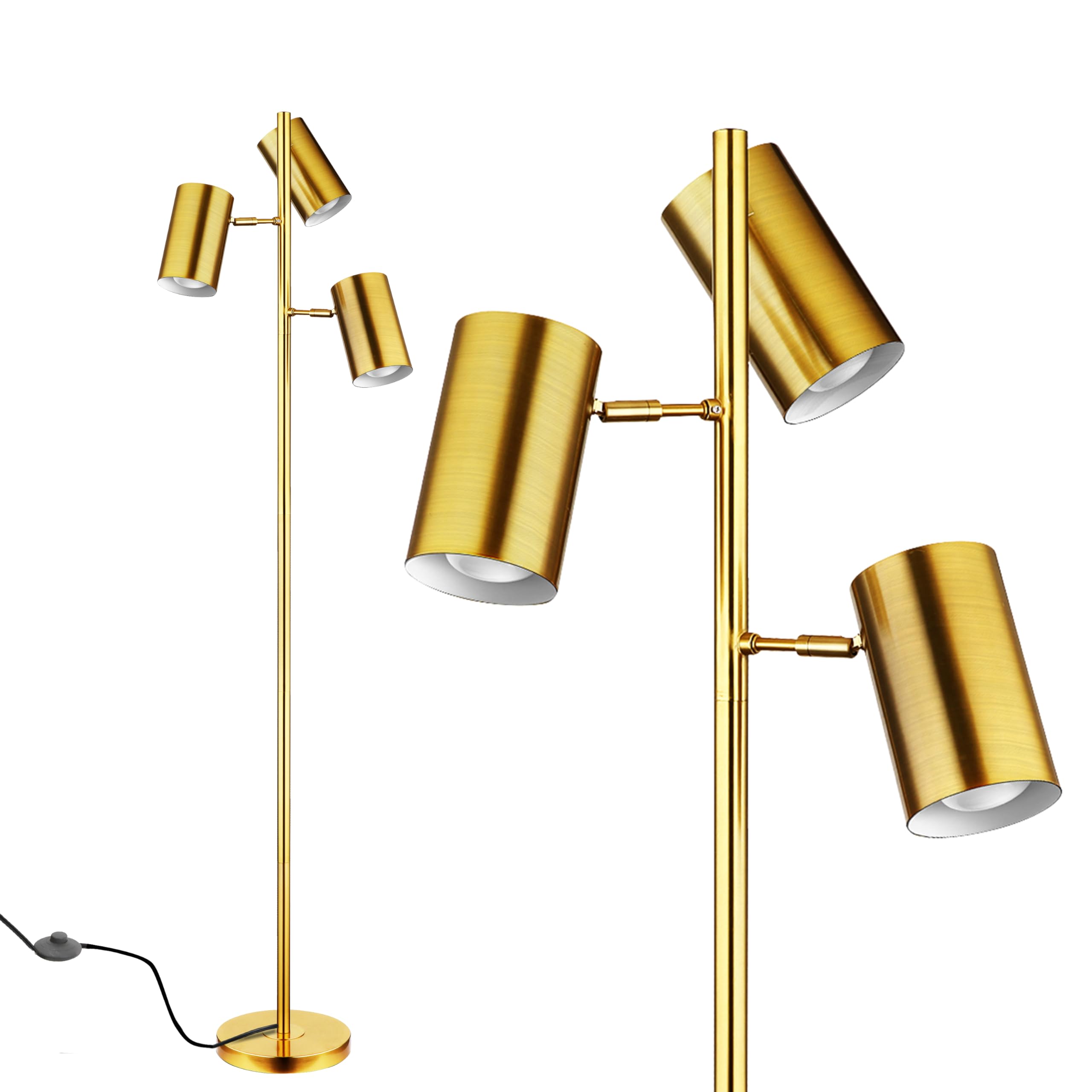 Lámpara de pie de árbol con 3 bombillas, lámpara de poste alto dorada con 3 luces giratorias ajustables, lámpara de pie de granja