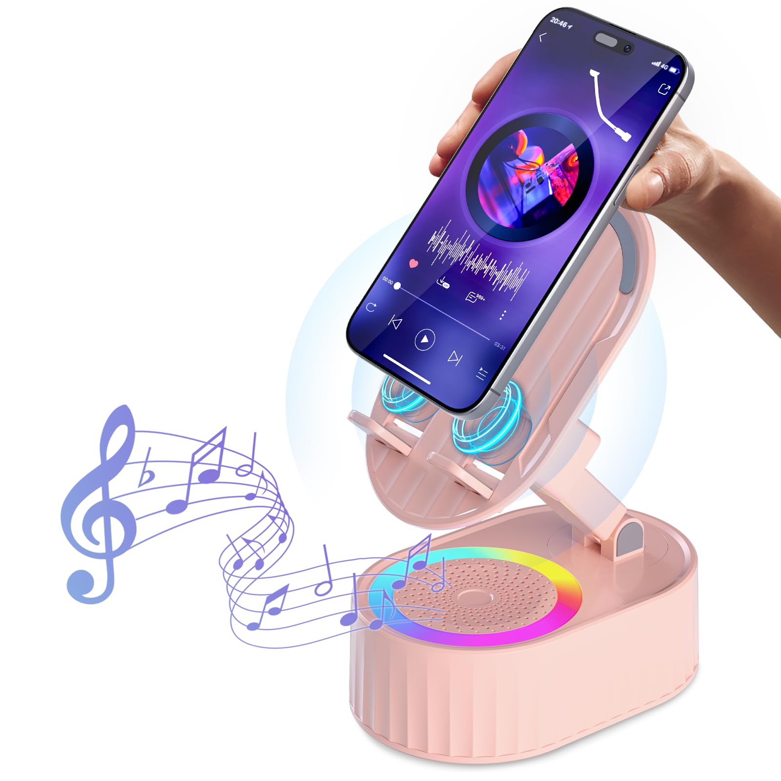 Altavoz Bluetooth de audio de inducción inalámbrico 5 en 1, recargable de emergencia (3000 mAh) con luz ambiental colorida plegabl