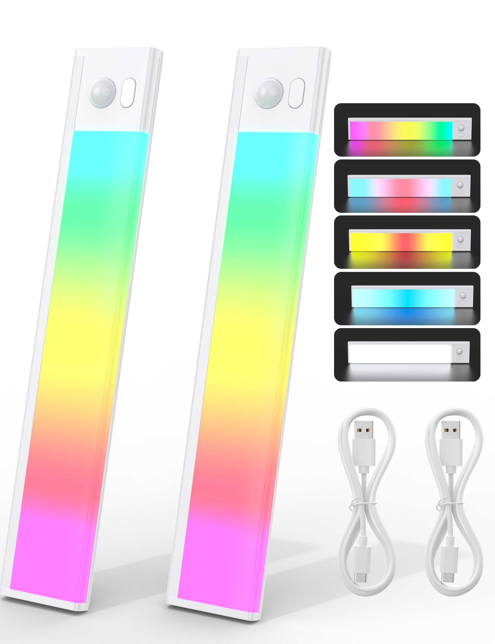Joyzy Luz ambiental RGB recargable con sensor de movimiento, 66 luces LED para armario con 4 modos de color y luz blanca magnética